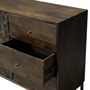 Golden Gem Dark Mango Furniture. Our dark golden gem furniture collection is handmade from solid mango wood which is finished in dark walnut brown colour of finish with a beautiful gold back lay that presents a stunning luxurious and appealing contrast. Each item sits upon a modern industrial style iron frame with a gold powder coated finish.