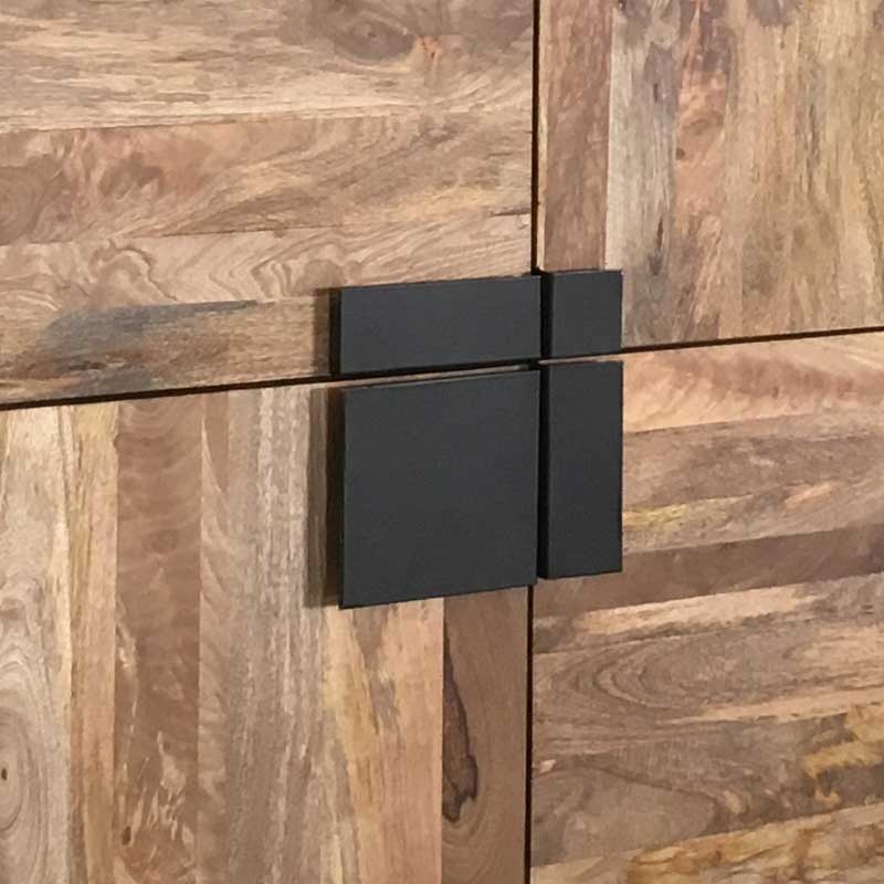 Our Agra Light Mango 4 Door Tall Cabinet, Light Mango Wood & Modern Metal Frame Furniture Collection.