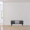 Ash Black 4 Drawer Media Unit. 100% of Artisan products are hand-crafted individually. These black wood tv units are hand-made from solid wood hence variation in size, color, finish, texture, natural grain pattern, knots, movement of timber etc are an integral part of the way products.