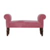 Bench In Pink Velvet. You may encounter variations from batch to batch hence if you are looking to pair products under similar room settings; you can opt for a bespoke order or take an informed decision about the possible variations.