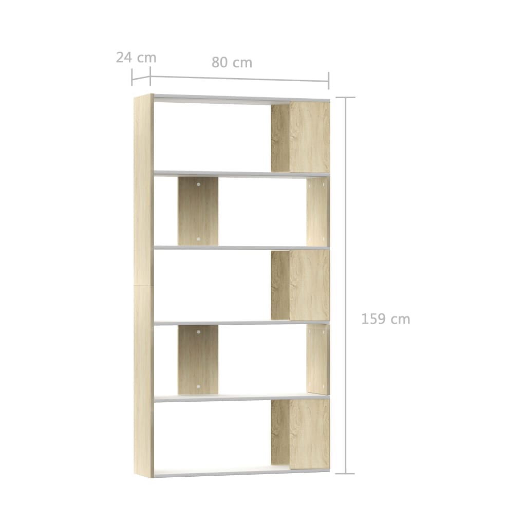 Book Cabinet/Room Divider White and Sonoma Oak 80x24x159 cm Chipboard.