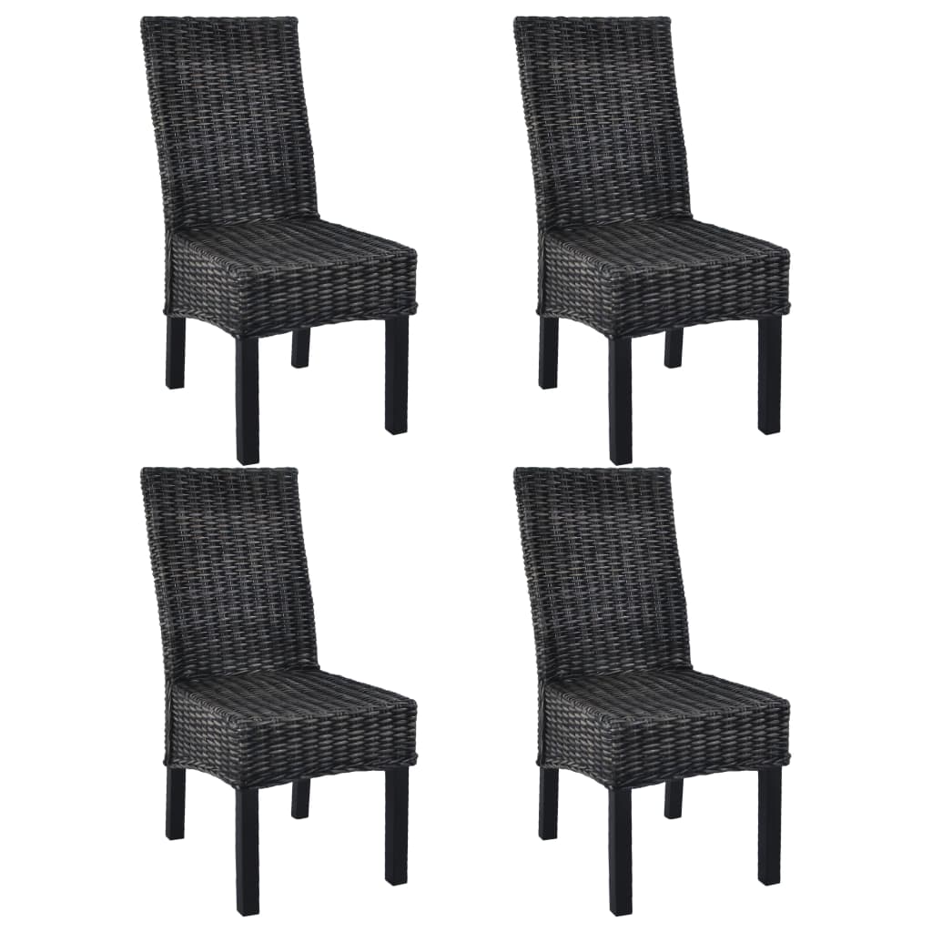Casa Black Dining Chairs 4 pcs Kubu Rattan and Mango Wood
