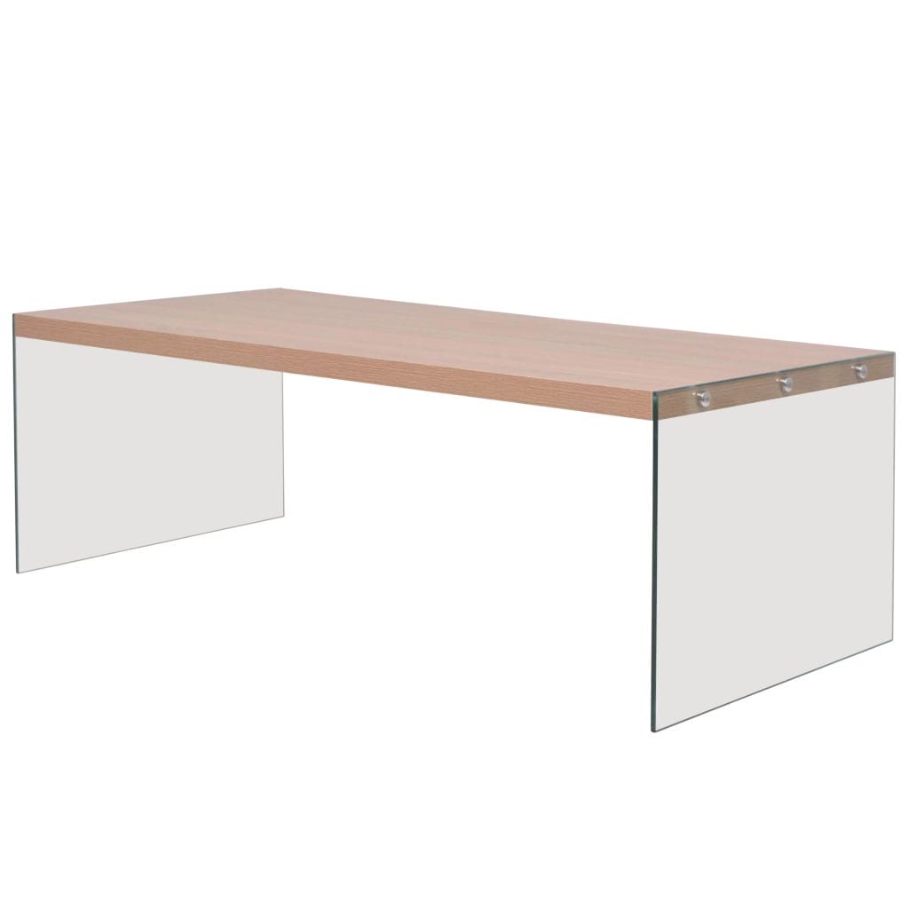 This elegant coffee table with a simple yet timeless design will add a touch of contemporary style to your home. Merging a sturdy MDF tabletop with glass sides, this table exudes an elegance that will suit any interior. The tempered glass is safer and stronger than normal glass. The coffee table is ideal for keeping snacks and drinks, or for displaying decorative items like vases, fruit baskets, etc. Assembly is easy.