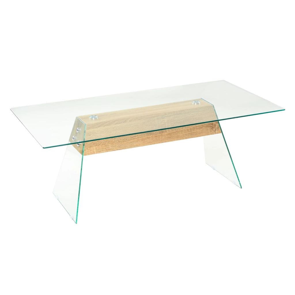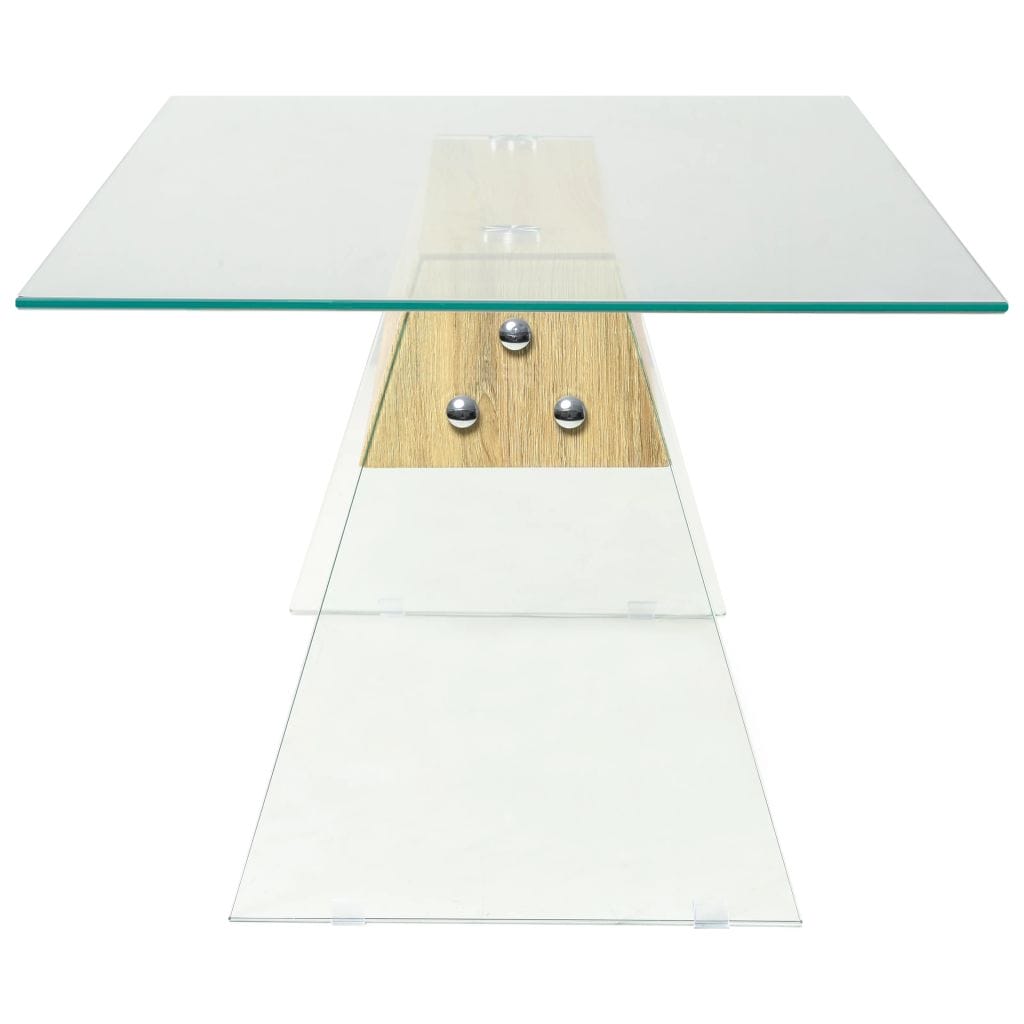 This trendy coffee table will add a touch of contemporary style to your home with its unique design. The three pieces of tempered glass are fixed onto the oak-look MDF, which makes the coffee table strong and stable. Tempered glass is produced with a controlled thermal or chemical treatment, which makes it more durable and safe compared to normal glass. The tabletop is ideal for displaying decorative items like vases, photo albums, or potted plants, or for keeping snacks and drinks. The table is easy to assemble.