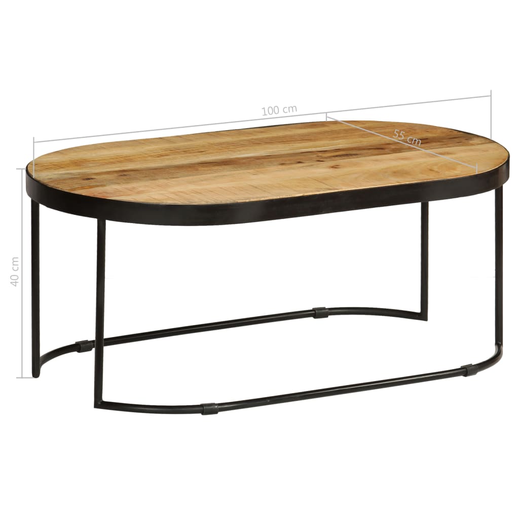 Coffee Table Oval Solid Rough Mango Wood and Steel 100 cm.