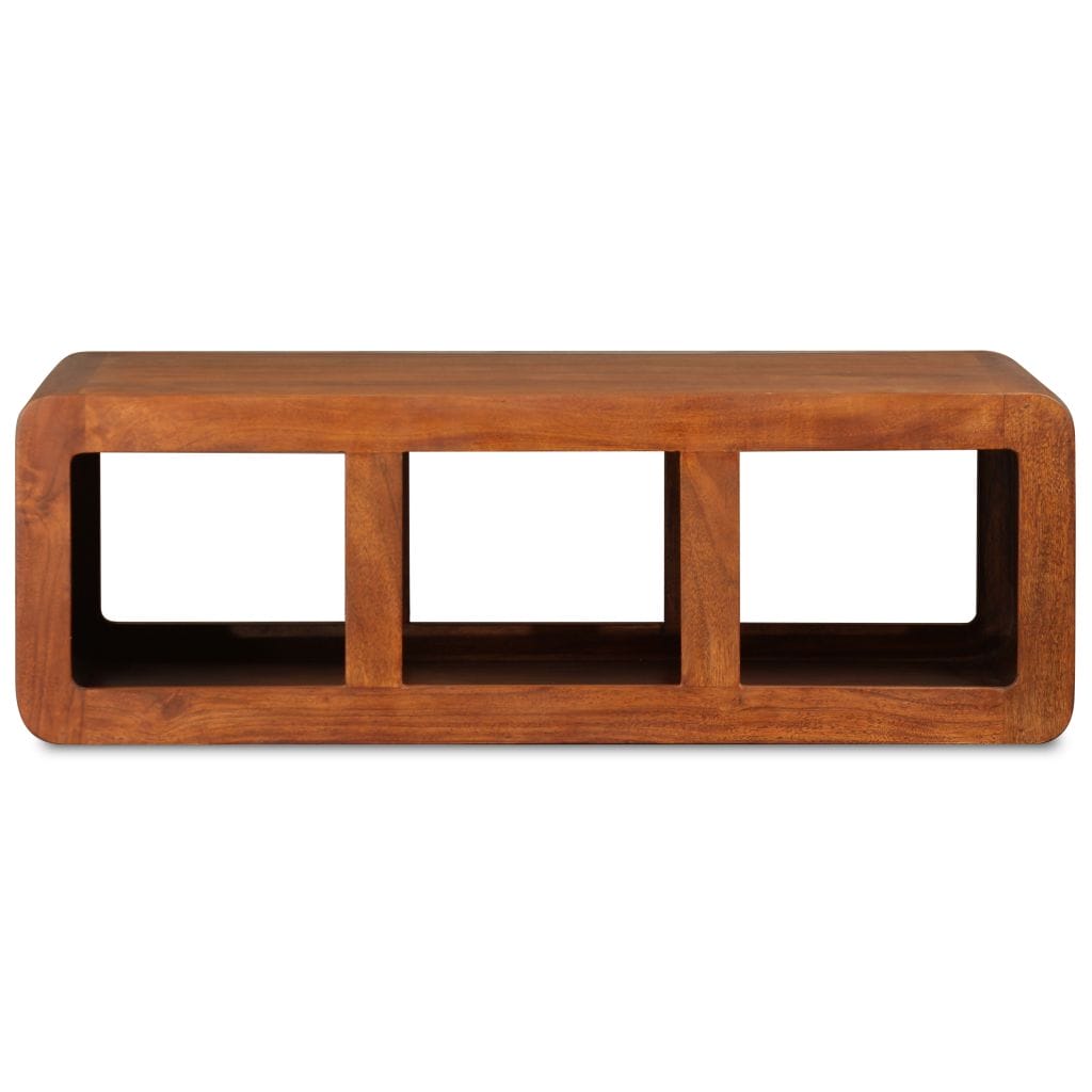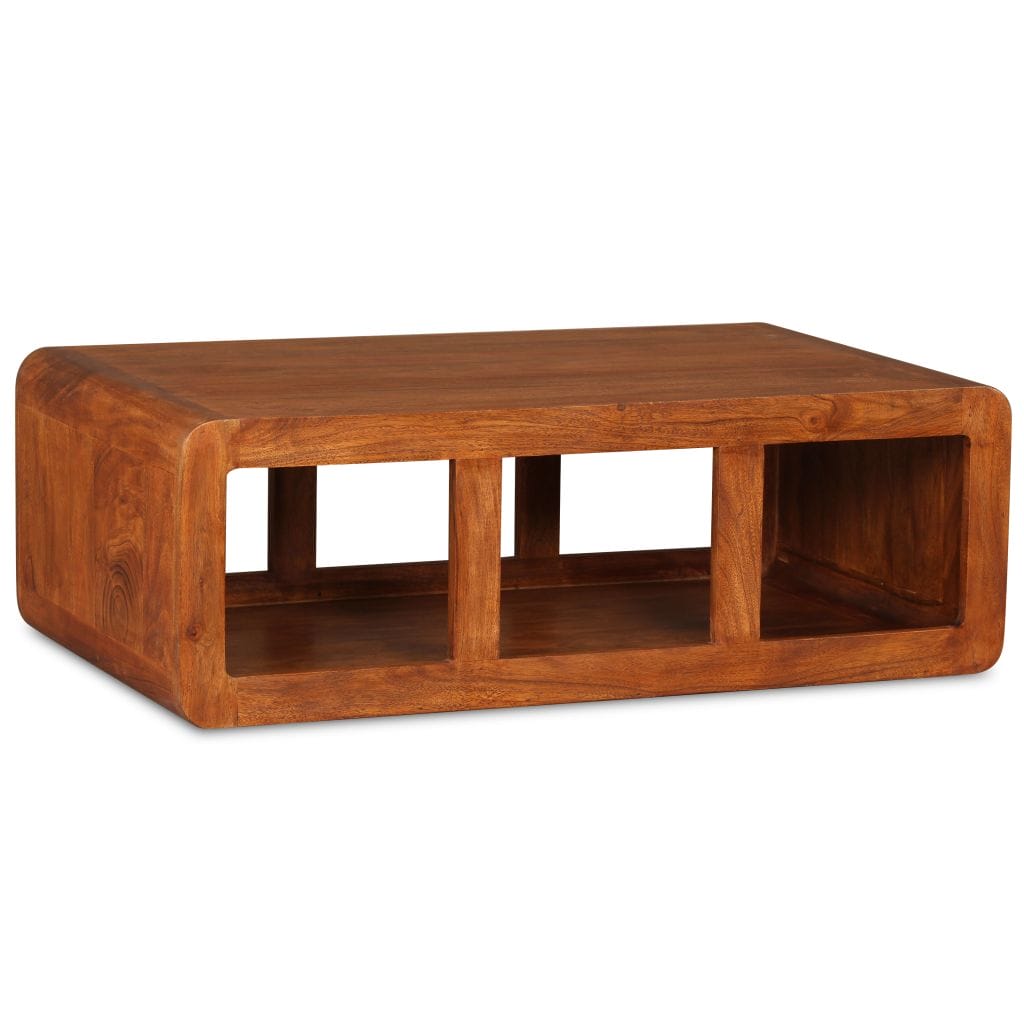 This stylish and practical coffee table will make a timeless addition to your home decor. It can be also used as a side table or end table. This living room table is made of solid acacia wood with a sheesham finish. Acacia is a durable tropical hardwood. This coffee table has a sturdy top, on which you can place your drinks, a fruit basket or vase or other decorative items, while its strong wooden frame contributes to the sturdy construction. Its large storage shelf underneath the tabletop provides ample space for keeping all kinds of smaller items organised and within reach. It’s fully handmade, and the beautiful wood grains make every piece of our Handmade Furniture unique and slightly different from each other. The item is already assembled; no assembly is required which means you can enjoy using it straight away! Important note: The colours vary from piece to piece, making each piece unique; the delivery is random.
