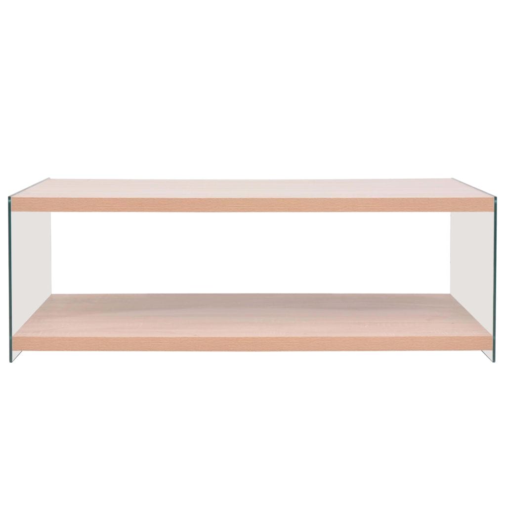 Coffee Table with Shelf Glass MDF Oak Colour.