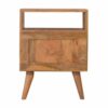 Make a statement in your bedroom with this unique Diamond Screen Printed Bedside with Open Slot. This solid wood structure is crafted by hand from mango wood, and features an oak-ish finish with black and white diamond print fronts. The knock down, secure packaging makes parcel delivery a breeze, and the 2 drawers provide plenty of storage space for all of your bedroom essentials.