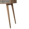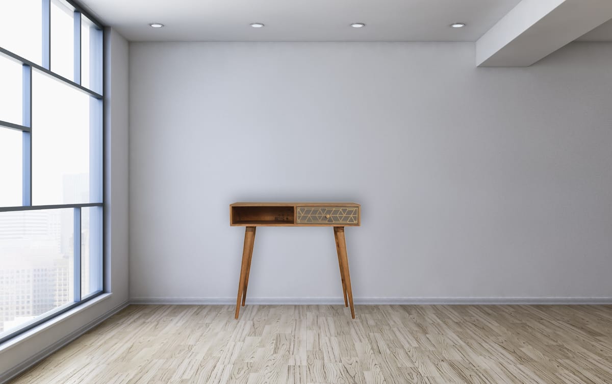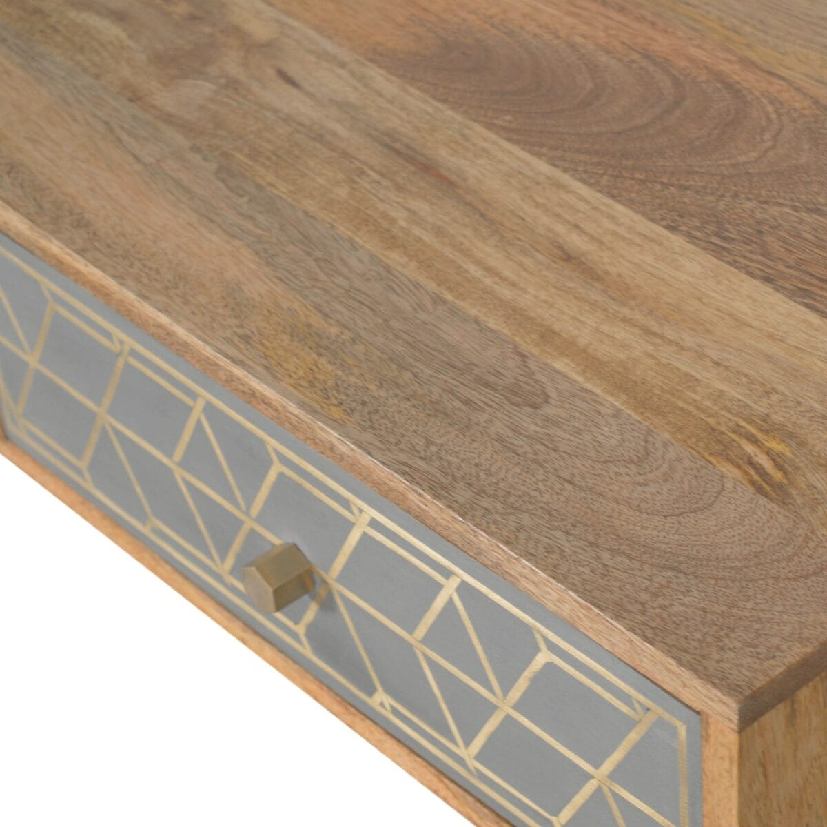 This modern Scandinavian style Dice Writing Desk will add a touch of elegance to any room. The solid wood structure and mango wood construction are both sturdy and stylish. The oak-ish brass inlay on the drawer fronts adds a touch of sophistication, while the cement inlay provides a durable surface for writing. The desk is easy to assemble and knock down for easy delivery, and comes with secure packaging to ensure your satisfaction.