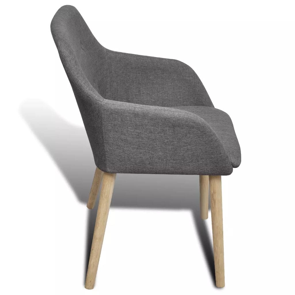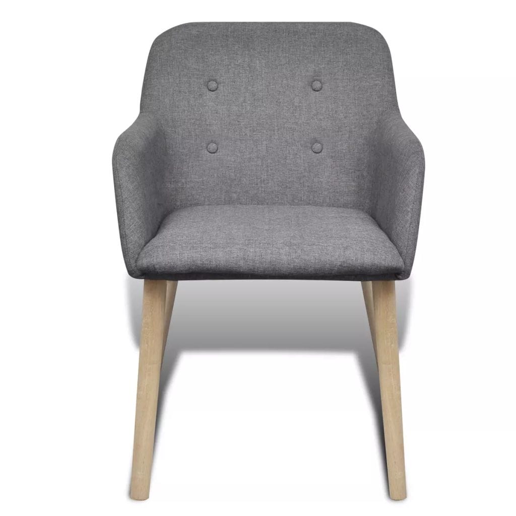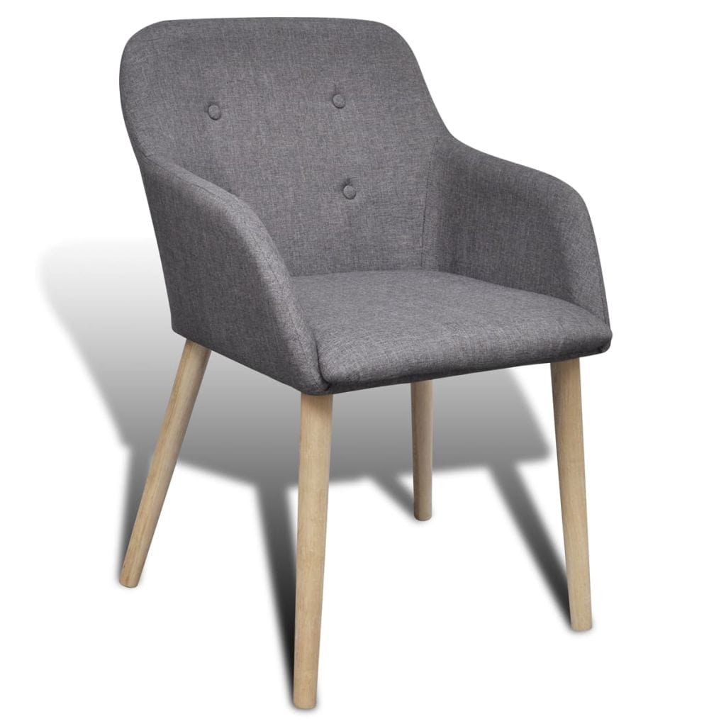 Material: Oak legs + high-quality fabric seatOverall size: 52 x 57 x 76.5 cm (W x D x H)Seat width: 40 cmSeat depth: 42 cmSeat height from the ground: 45 cmBackrest height: 37 cmArmrest height: 16 cmLeg size: 4.5 x 39 cm (diameter x H)Delivery includes 6 x dining chairFabric: Polyester: 100%