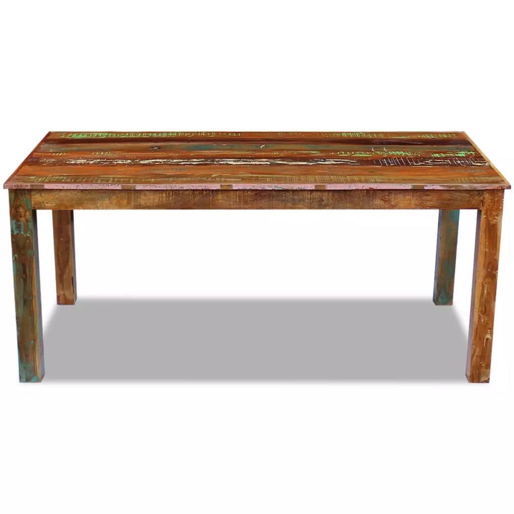 This antique-style reclaimed dinning table will make a unique addition to your room. Its solid wood construction makes it stable and secure. Made of reclaimed wood, this dinner table is solid, durable and beautiful, and has the characteristics of different woods like sheesham, teak, palisander, mango wood, acacia, recycled wood, hard wood, etc. Every piece of this furniture is unique, and slightly different from the next. Signs of wear and visible grain structure give each piece its own history and a unique look. The dining table is fully handmade. Every step of the process is carried out with the greatest care, be it polishing, painting or lacquering. Important note: Colours may vary from piece to piece, making each of our tables unique. The delivery is random.