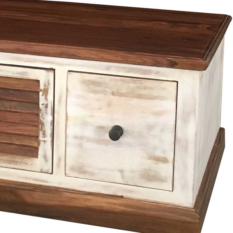 Furthermore, this vintage style furniture has unique hand painted finish & stylish round pull tab handles.