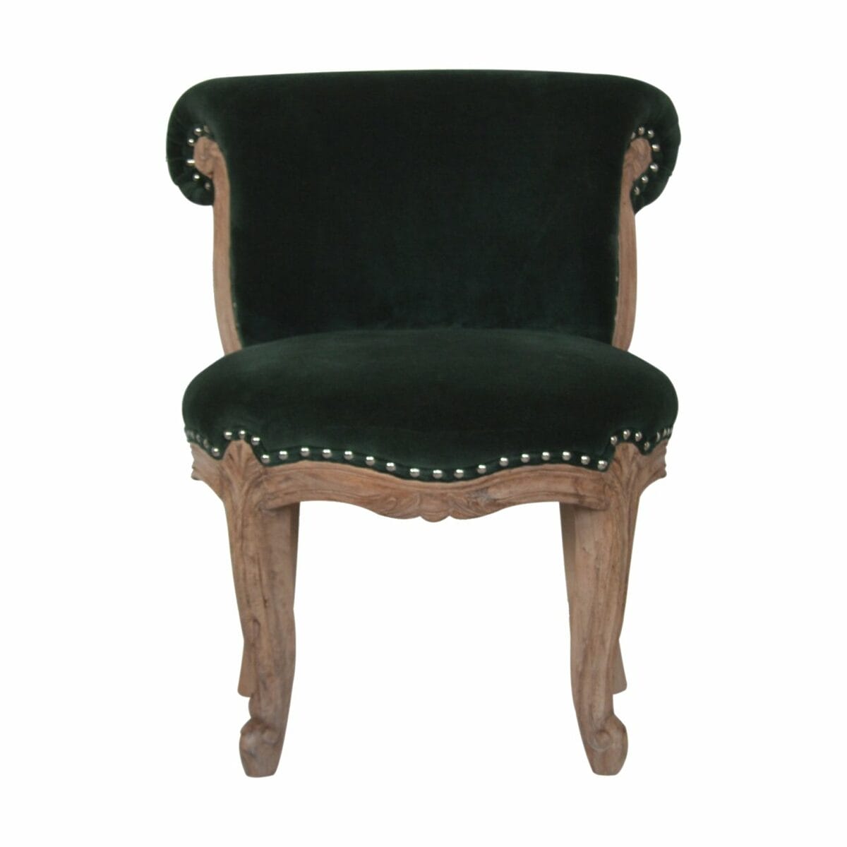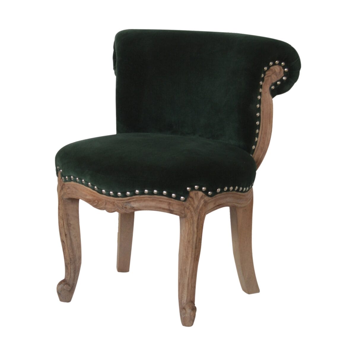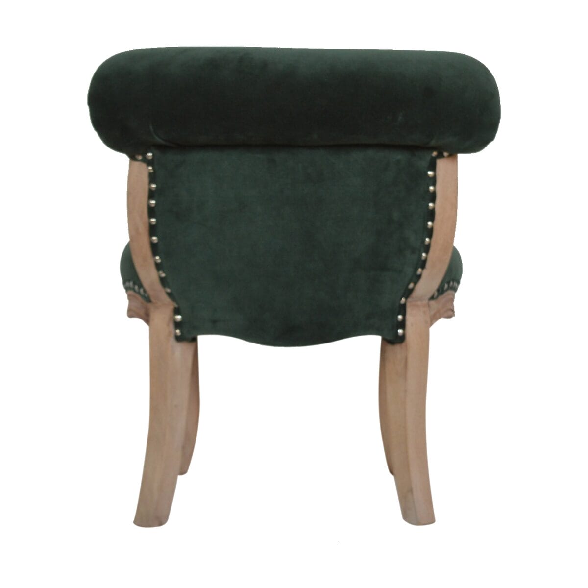 Emerald Velvet Studded Chair with Cabriole Legs. You may encounter variations from batch to batch hence if you are looking to pair products under similar room settings; you can opt for a bespoke order or take an informed decision about the possible variations.