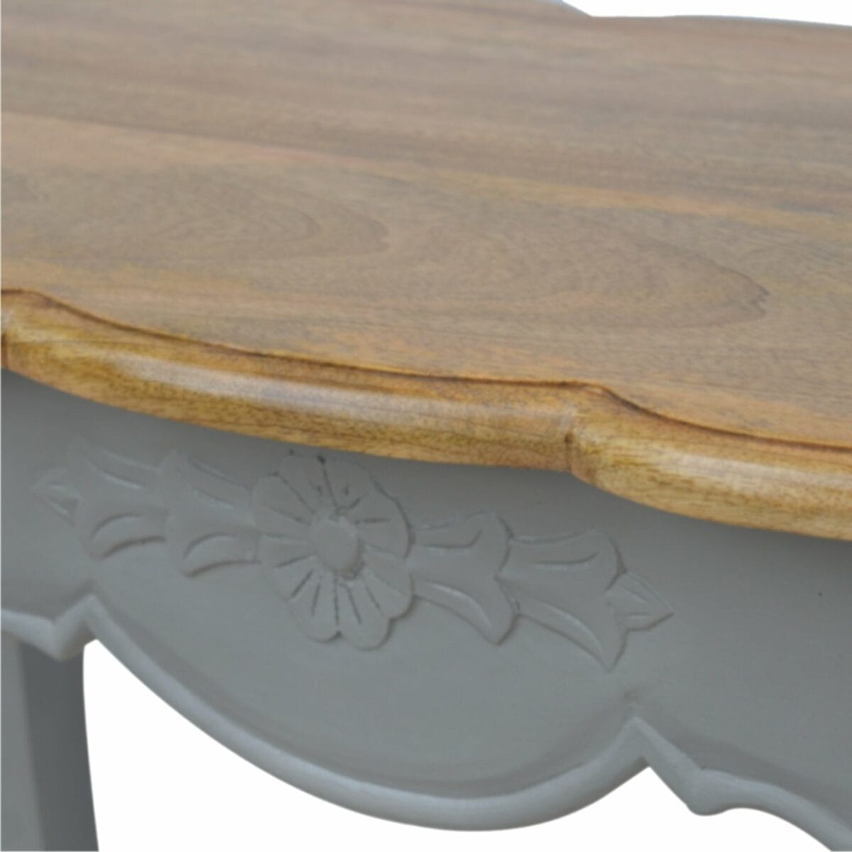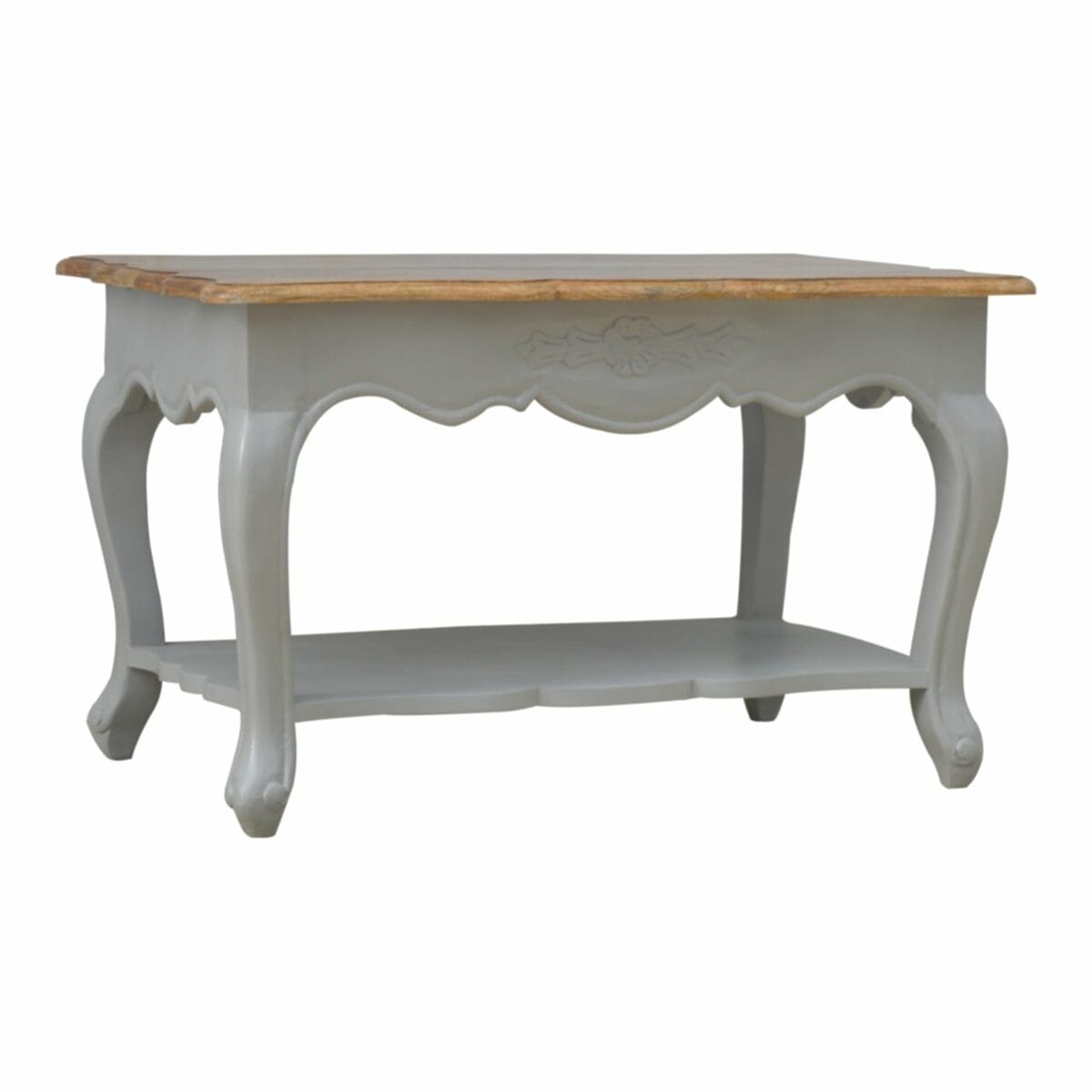 This French Style Coffee Table is the perfect addition to any home. The solid wood structure and mango wood top make this beautifully handmade French Style Furniture durable and sturdy, while the French grey base gives it a real touch of elegance. The best part about these Solid Wood Coffee Tables is that they are crafted by hand and come fully assembled, so you don’t have to worry about assembling it. Plus, the secure packaging and parcel delivery make sure your purchase arrives safely and on time.