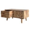 This Geometric Coffee Table 2 Drawer will be the show-stopping centerpiece of any living room. Crafted from striking solid mango wood, it features stylish Scandinavian style feet, with a unique geometric block pattern on the drawer fronts. Handmade to perfection with a light wood finish, this coffee table is built to last – bringing chic sophistication to your home for many years to come.