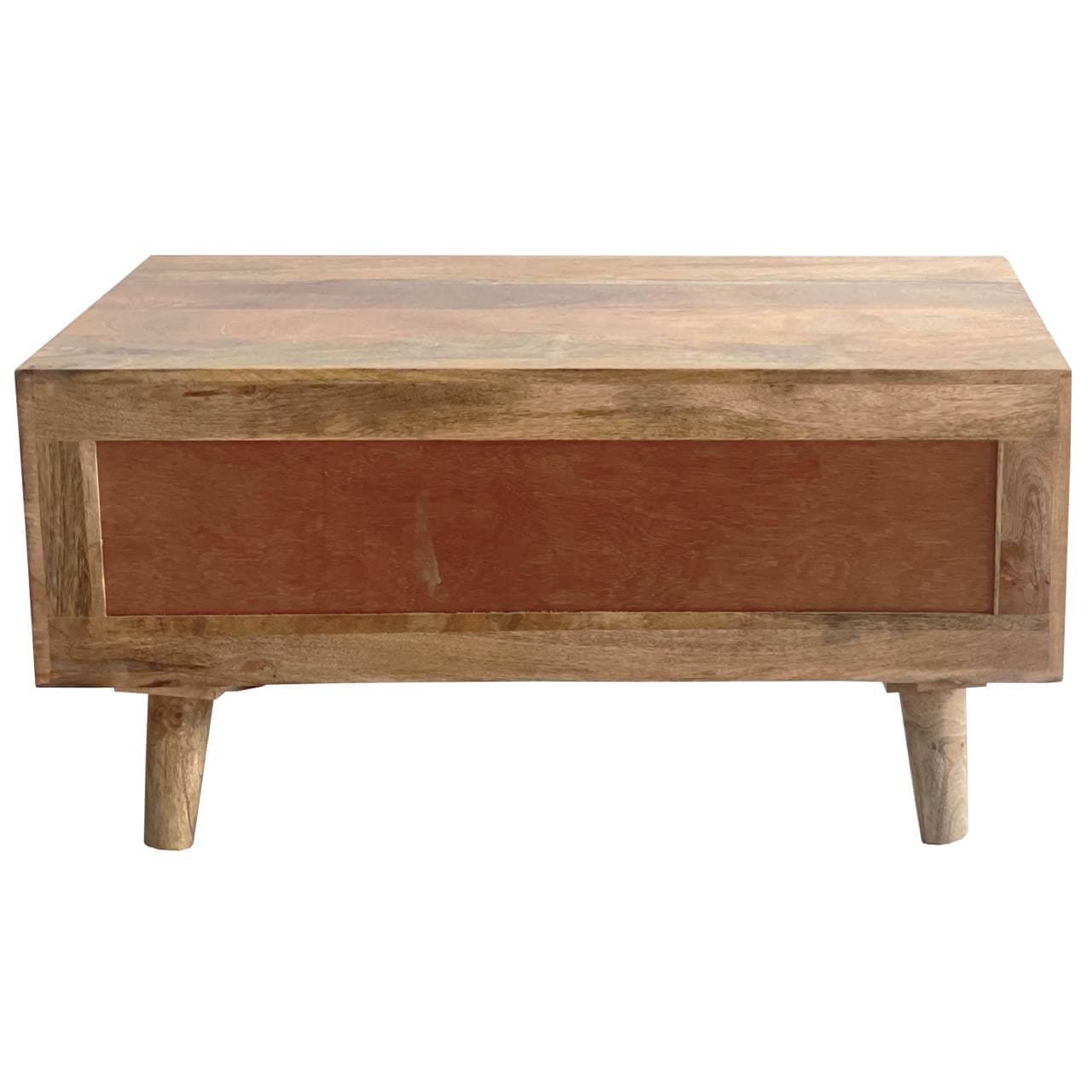 This Geometric Coffee Table 2 Drawer will be the show-stopping centerpiece of any living room. Crafted from striking solid mango wood, it features stylish Scandinavian style feet, with a unique geometric block pattern on the drawer fronts. Handmade to perfection with a light wood finish, this coffee table is built to last – bringing chic sophistication to your home for many years to come.