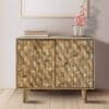 Bring a distinctive and timeless look to your home with the Geometric Small Sideboard. Handcrafted from solid mango wood and finished in a light wood, this Scandinavian-style piece features geometric block patterning that adds visual interest to any room. Not only does it bring an eye-catching style to any décor, but it also offers plenty of storage space for books, dishes and other items.