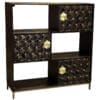 Experience the feeling of luxury and comfort with our Golden Gem Dark Mango Bookcase Storage Cabinet. This exclusive piece of furniture will bring a distinguished style to any living room or bedroom space. With a stunning diamond pattern CNC cut out from mango wood doors and drawers, gold metal feet frame, golden push to open handles, and a dark walnut finish, this retro industrial piece is an eye-catching addition to any home.