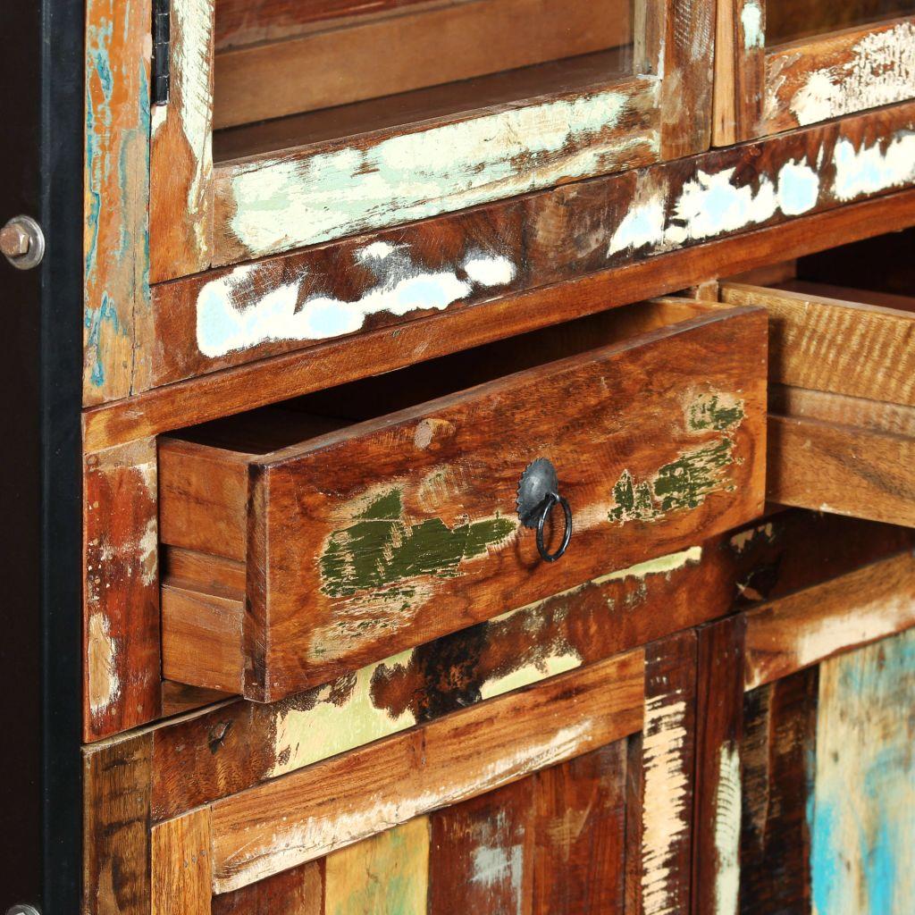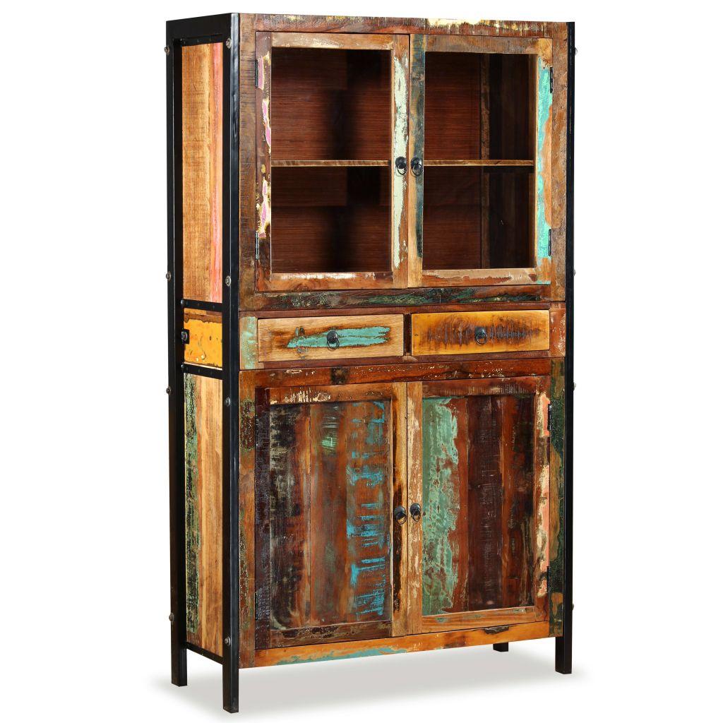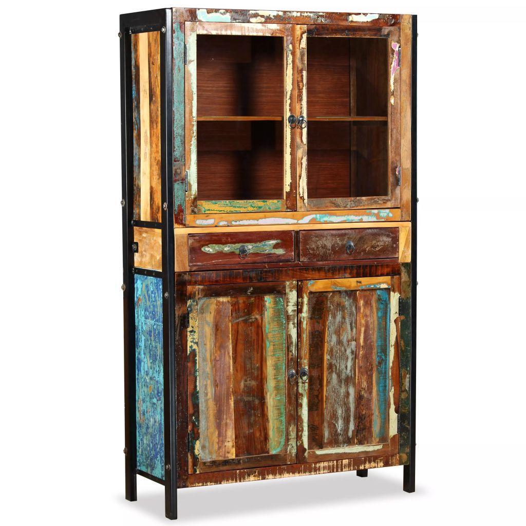 This antique-style reclaimed highboard will offer you ample storage space and help you to maintain your items in great order. This storage sideboard is made from solid reclaimed wood, which means that the sideboard has the characteristics of different woods like mahogany, teak, hard wood, mango wood, acacia, etc. Reclaimed wood is solid, stable, durable, and beautiful. Keeping this piece of furniture at home will show your concept of resource conservation, environment protection and sustainable development. Every piece of this furniture is unique, and slightly different from the next. Signs of wear give each piece a unique look and add to its spectacular vintage style. The cabinet is fully handmade, and the craftsmanship adds to its spectacular retro style. Every process of recombining, polishing, painting and lacquering is elaborately prepared. Assembly is easy. Important note: The colour may vary from piece to piece, making each of our highboards unique; the delivery is random.