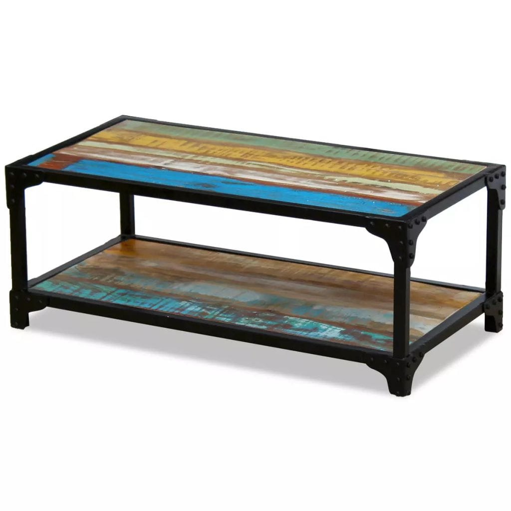 These industrial vintage-style Industrial Coffee Tables, are made of solid reclaimed wood, will make a timeless addition to your home. Thanks to the strong steel frame, the coffee table is very steady and durable. The tabletop provides a stable and secure surface on which you can place your drinks, a fruit basket or vase or other decorative items. The shelf on the bottom provides ample space for storing multimedia appliances, books, magazines, and other items you want to keep within reach. The coffee table can also be used as a couch table, living room table, side table, etc. The coffee table is made of recycled wood, which means every piece of our solid reclaimed furniture is unique and slightly different from the next. Furniture made of reclaimed wood has the characteristics of different woods, like teakwood, Sheesham wood, acacia, palisander, mango wood, saal wood, etc. Reclaimed wood is solid, stable, durable, and beautiful. Signs of wear and visible grain structure give each piece its own history and unique look. The Industrial table is fully handmade, and the craftsmanship adds to its spectacular retro style. Every step of the process is carried out with the greatest care, be it recombining, polishing, painting or waxing. Important note: Colours vary from piece to piece, making each of our Reclaimed Wood Coffee Tables unique; the delivery is random.