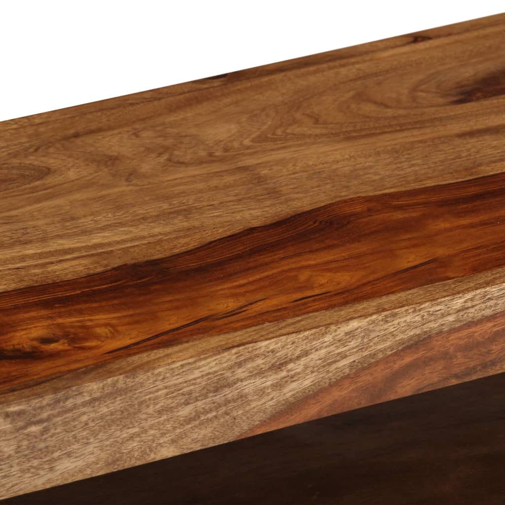 This beautiful Sheesham wooden TV cabinet is trendy yet practical that will be a focal point of your room. This vintage industrial-style TV cabinet, made of real solid Rosewood, will make a timeless addition to your home. Sheesham is a tropic hardwood that is renowned for its rich grains and is also identified as rosewood or palisander. Every step of the process is taken out with the greatest care, be it polishing, painting or lacquering. Thanks to the strong steel frame, these Large Industrial Stands are very steady and durable. It has two drawers for putting knick-knacks and a shelf for displaying multimedia devices, gaming consoles and magazines organized and tidy. The TV stand can also be used as a side cabinet, hi-fi cabinet, etc. Important note: Colours vary from piece to piece, making each of our solid wood tv stands unique; the delivery is random.