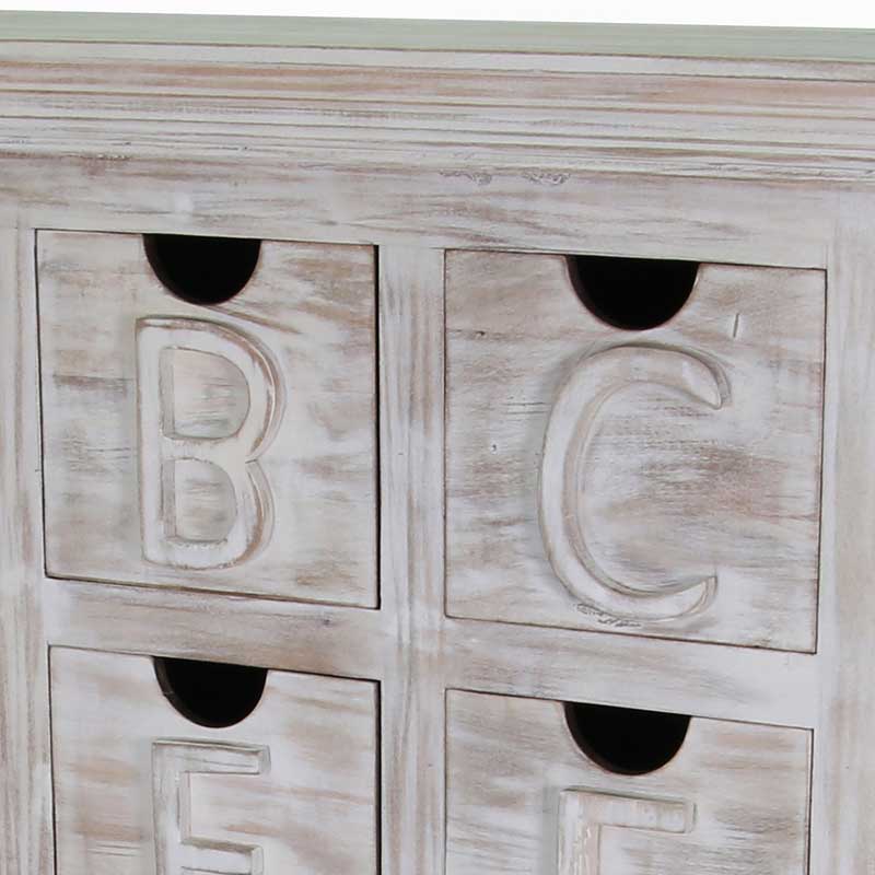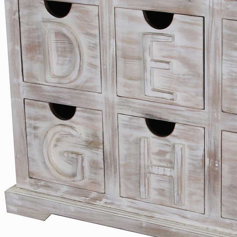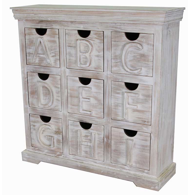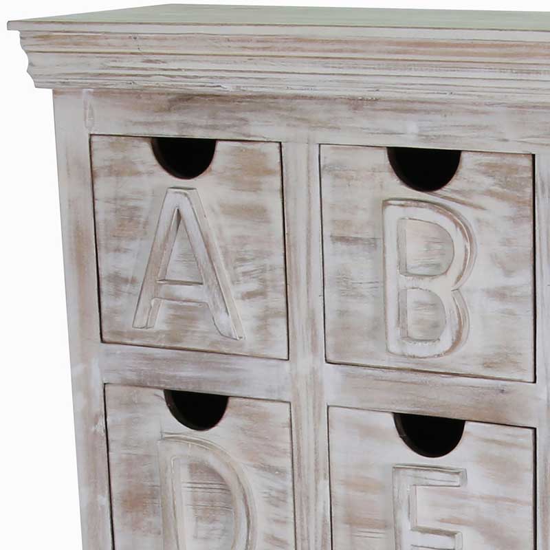 Mandakini Alphabetic Chest Of Drawers White washed Mango Wood.