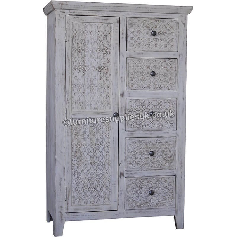 This small white mango wood Almirah features a cupboard space plus five spacious drawers therefore offers plenty of room for storage.