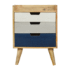 Looking for a chic and modern bedside table that will make a statement in your bedroom? Look no further than the Navy Gradient 3 Drawer Hand-painted Bedside. This beautiful piece of Solid Wood Bedroom Furniture is crafted from real sustainable mango wood and features coned legs, a gallery back top, and three drawers with navy blue, white, and grey painted drawer fronts. These Solid Wood Bedside Chests feature an oak-ish finish to give this piece a high-end look that you’ll love.