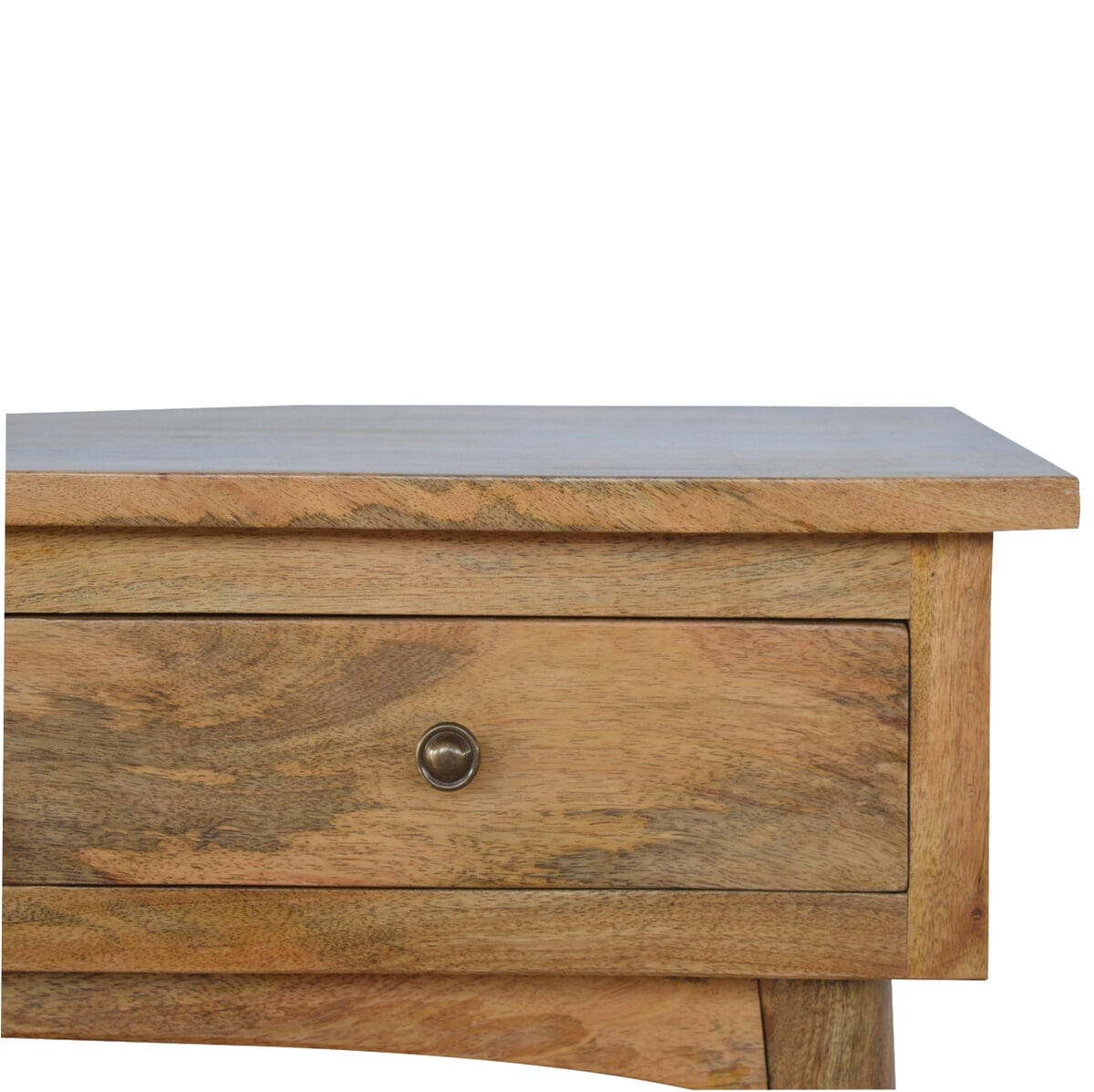 This Nordic Style Console Table with 3 Drawers is the perfect addition to any modern home. These Solid Wooden Hallway Tables have a beautiful oaky finish and are made of real solid wood. The Scandinavian-inspired design gives it a unique look that will add style to any room. The three drawers provide plenty of storage space, and the round knob handles give it a touch of elegance. If you are looking for a completely new look, why not couple up with one of our fantastic Solid Mango Wood Wall Mirrors.