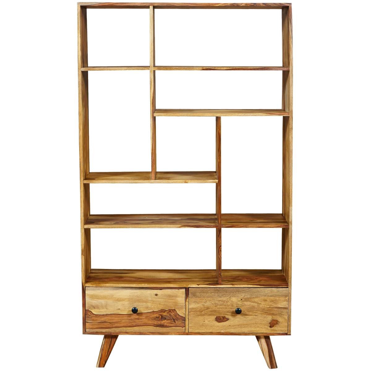This Oker Retro Vintage Bookcase 2 Drawer 9 Shelf features Solid Sheesham Wood in light honey colour of finish.
