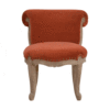 Petite French Chair In Rust Velvet. You may encounter variations from batch to batch hence if you are looking to pair products under similar room settings; you can opt for a bespoke order or take an informed decision about the possible variations.