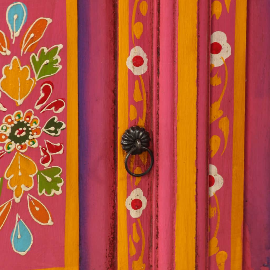 Pink Hand Painted Indian TV Unit Mango 120cm.