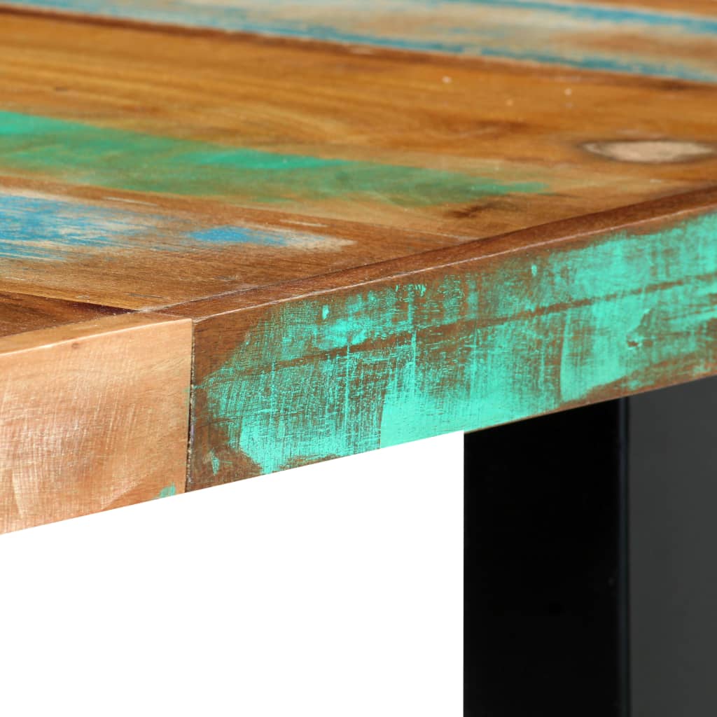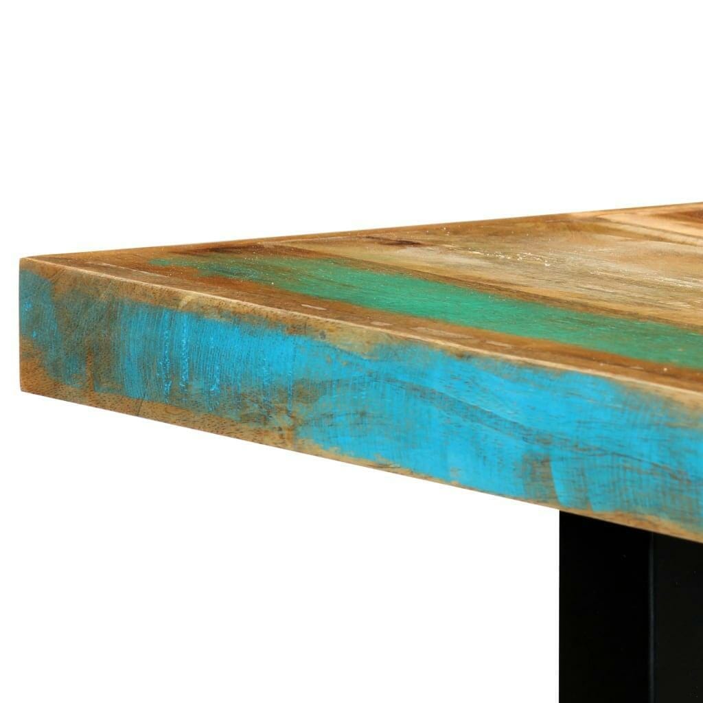 This striking dining table in the industrial style will make a distinctive addition to your kitchen or dining room. This dinner table is made of solid Reclaimed Wood that has been sourced from joists, floors and support beams from old buildings being demolished, and can consist of different types of wood like Sheesham (rosewood), pine, teak, beech, oak, cedar, mango wood, acacia, etc. This means the reclaimed wood retains the characteristics of these different types of wood. Reclaimed wood is already aged, weathered and dried, so it doesn’t shrink or bend. Signs of wear and visible grain structure also give the table its own history and a unique look. The exquisite craftsmanship adds to the table’s spectacular retro style. The powder-coated steel legs complete the industrial look. Every step of the process is carried out with the greatest care, be it polishing or lacquering. Our dining room table is easy to assemble. Important note: The solid reclaimed wood shows natural grains, making each of our dining tables unique and slightly different from the next; the delivery is random.