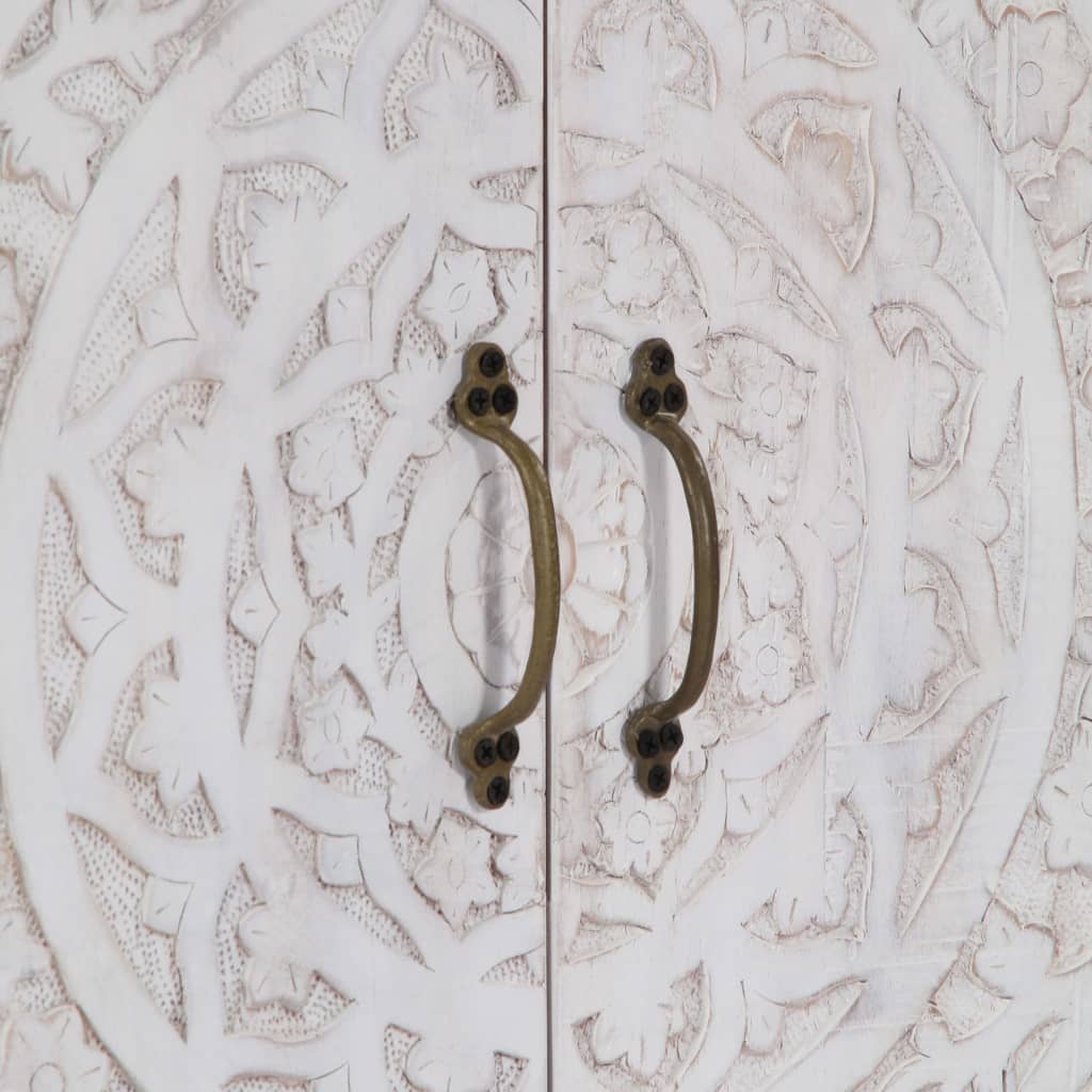 This sideboard exudes a vintage charm that will add a truly eye-catching piece to your home decor. The cabinet is made of solid acacia wood that has been given a white finish to endow it with a beautiful look. Consequently, this dressoir is exceedingly stable, durable, and attention-grabbing. Additionally, this wooden cabinet is fully handmade, the exquisite craftsmanship and the aesthetically-appealing wood grains make every piece of furniture distinctive and slightly different from each other. This dressoir features 4 cabinets with 4 doors, providing ample space for storing your shoes, books, as well as various other items. Important note: The wood grains vary from piece to piece, making each piece unique; the delivery is random.