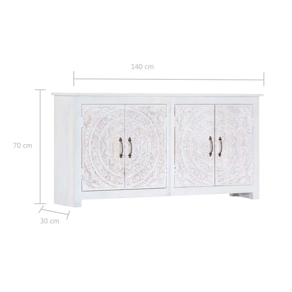 Sideboard Handmade White 140x30x70 cm Solid Acacia Wood.
