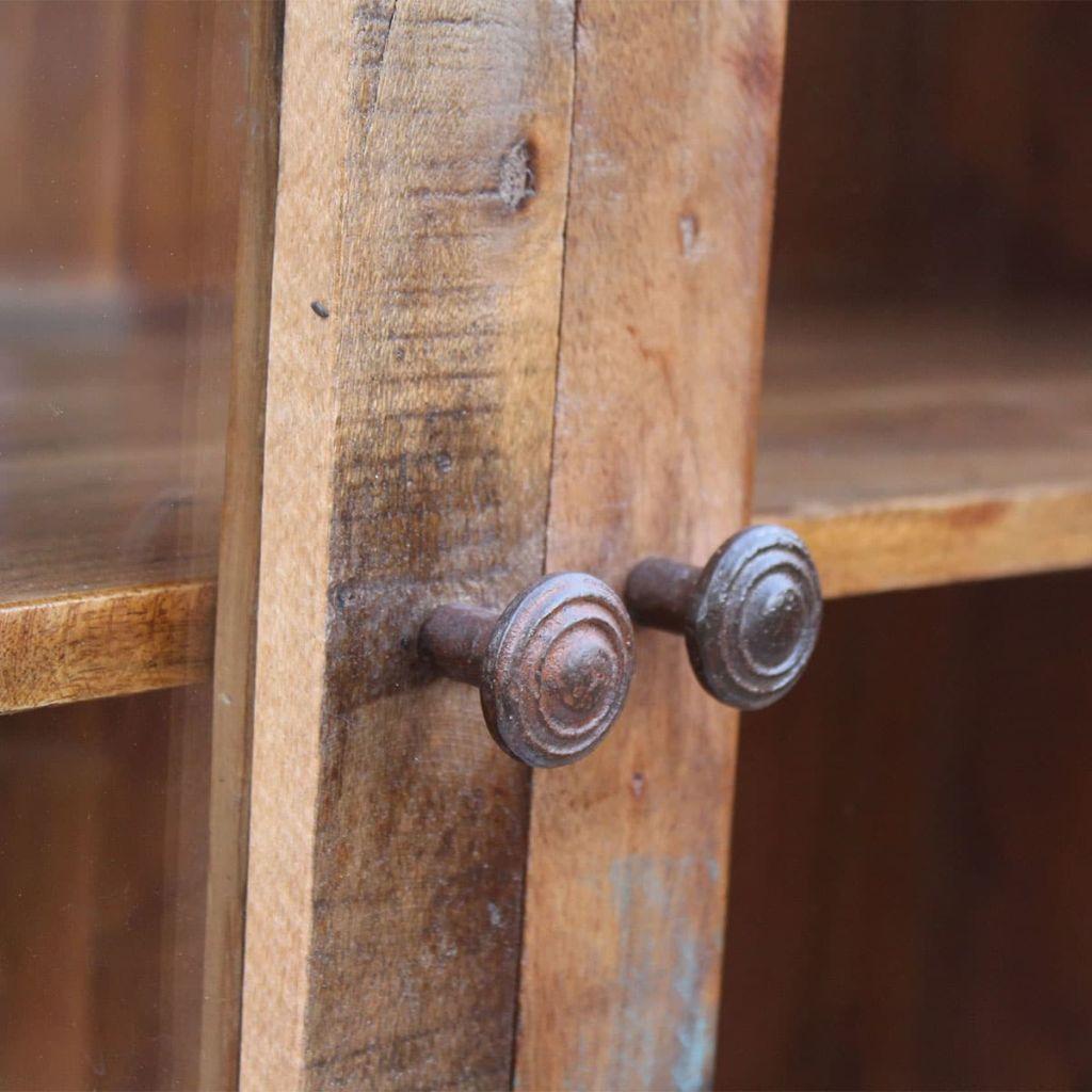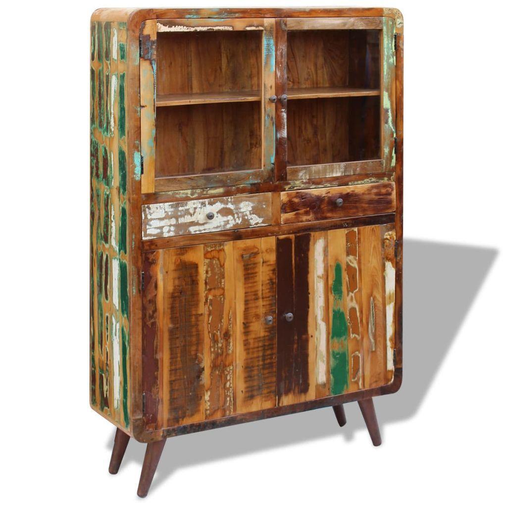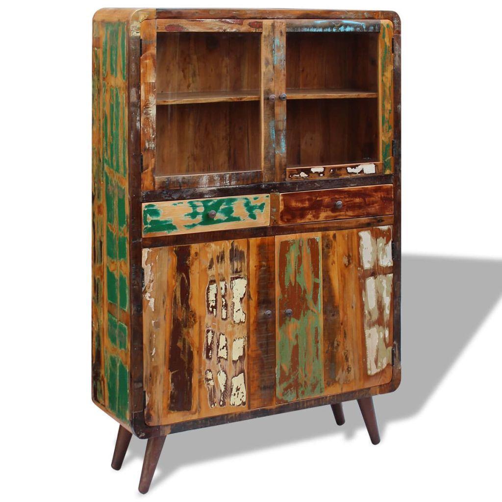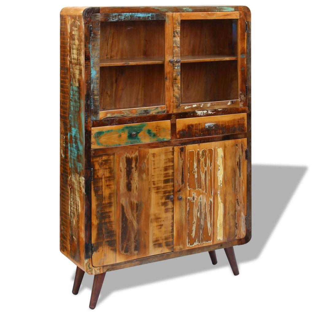 This sideboard will make a unique addition to your house. You can use it to place life necessaries, decorative items, books or kitchenware depending on where it is housed. Its solid wood construction makes it stable and secure to accommodate a lot of household articles. It can also be used as a cupboard, a highboard or a drawer cabinet. There are shelves with 2 glass doors above and 2 wooden doors below, and 2 pull-out drawers in the middle for storage, so your things will be placed in great order. Made of reclaimed wood, the highboard is solid, durable and beautiful, and has the characteristics of different woods like sheesham, teak, palisander, mango wood, acacia, recycled wood, hard wood, etc. Every piece of this furniture is unique, and slightly different from the next. Signs of wear and visible grain structure give each piece its own history and a unique look. This cupboard is fully handmade. Every step of the process is carried out with the greatest care, be it polishing, painting or lacquering. Important note: Colours may vary from piece to piece, making each of our cabinet unique. The delivery is random.