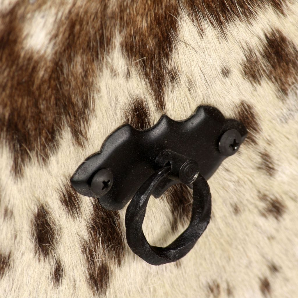 Our stylish sideboard with a genuine cowhide detail and hand-carved decorations will be a real eye-catcher in your home, while providing an ideal solution for keeping your items organised and clutter out of sight. Crafted from solid Sheesham wood, the side cabinet is durable, easy to maintain, and will give your decor a touch of rustic charm. Sheesham is a tropical hardwood that is famous for its rich grains and also known as rosewood or palisander. The beautiful wood grains make each of our sideboards unique and slightly different from the others. This unique sideboard is rich in decorative features, like the genuine cowhide detail, hand-carved decorations, and retro-style pulls, which give the cabinet its unique charm. The side cabinet is supported by sturdy steel feet which also add an industrial flair. Assembly is easy. Important note: The wood grains and leather patterns may vary from piece to piece, making each of our sideboards unique; the delivery is random.