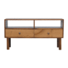 Solid Wood Media Unit with 2 Open Slots and 2 Oak Wood Front Drawers 35x90x47cm