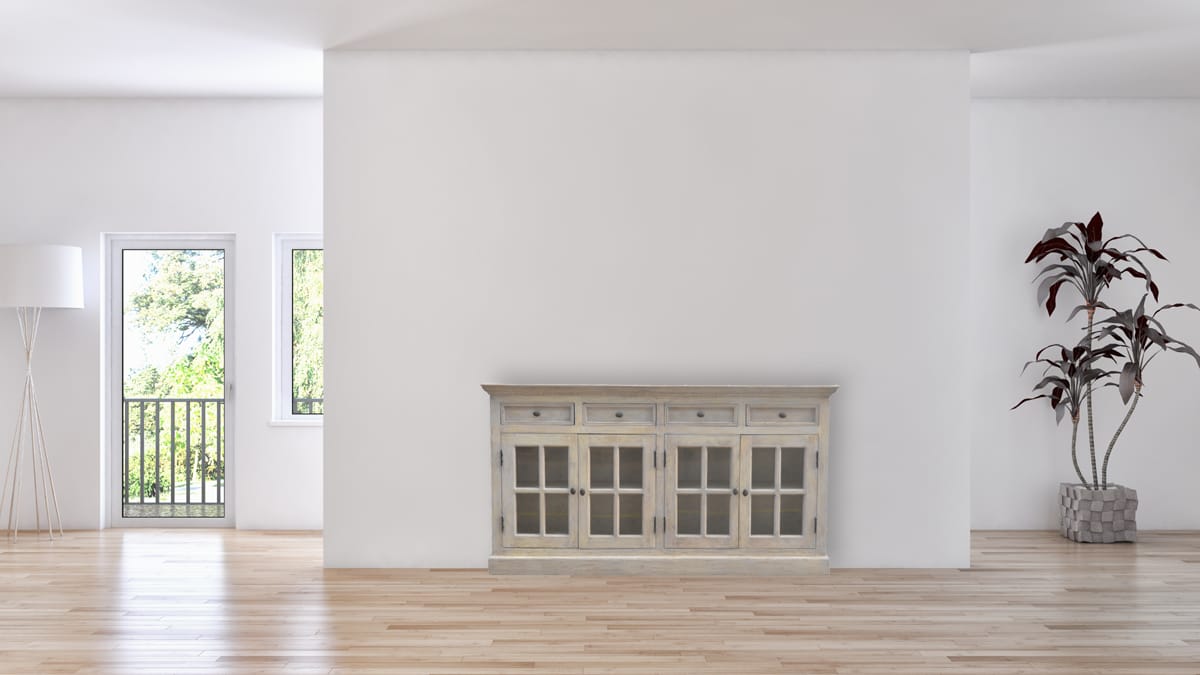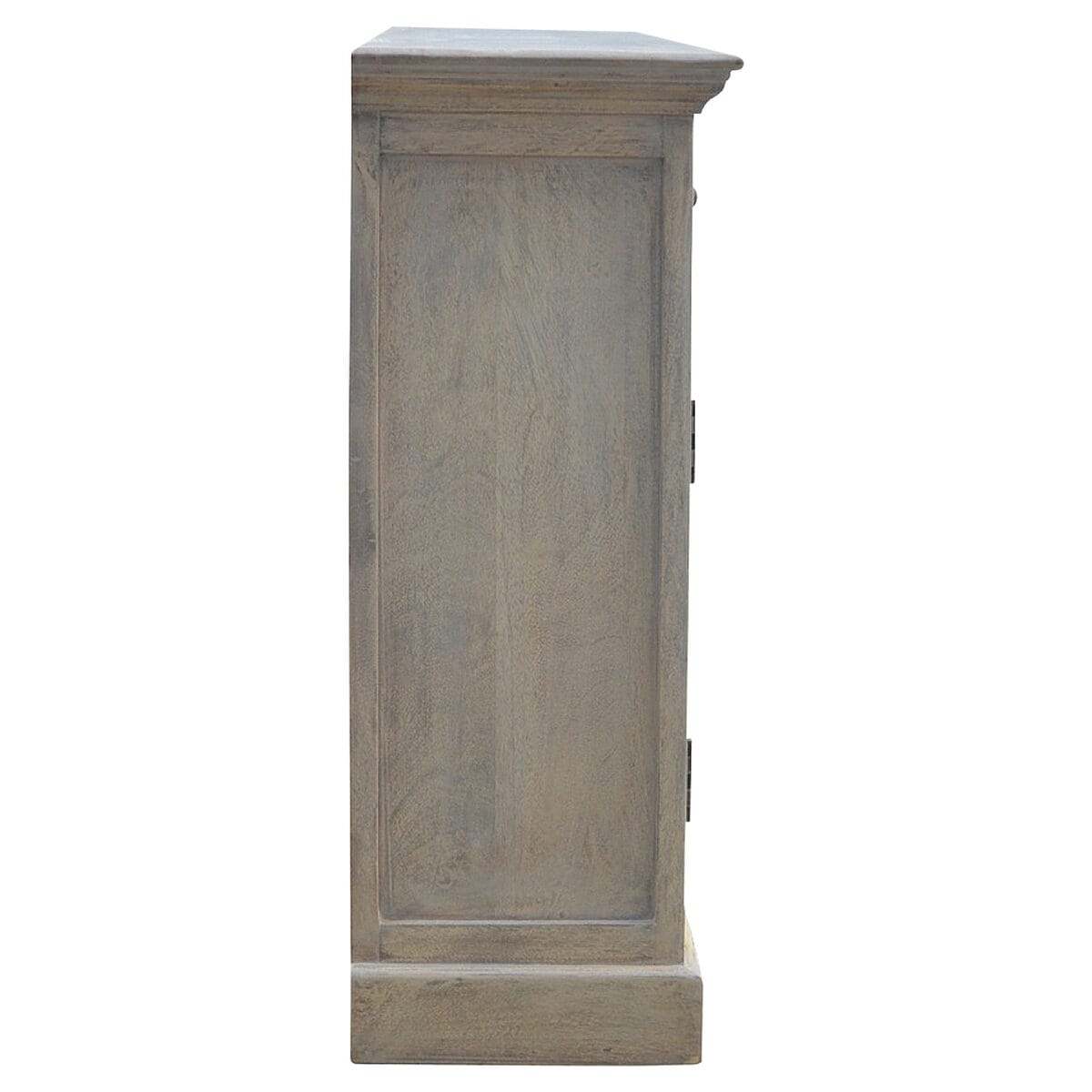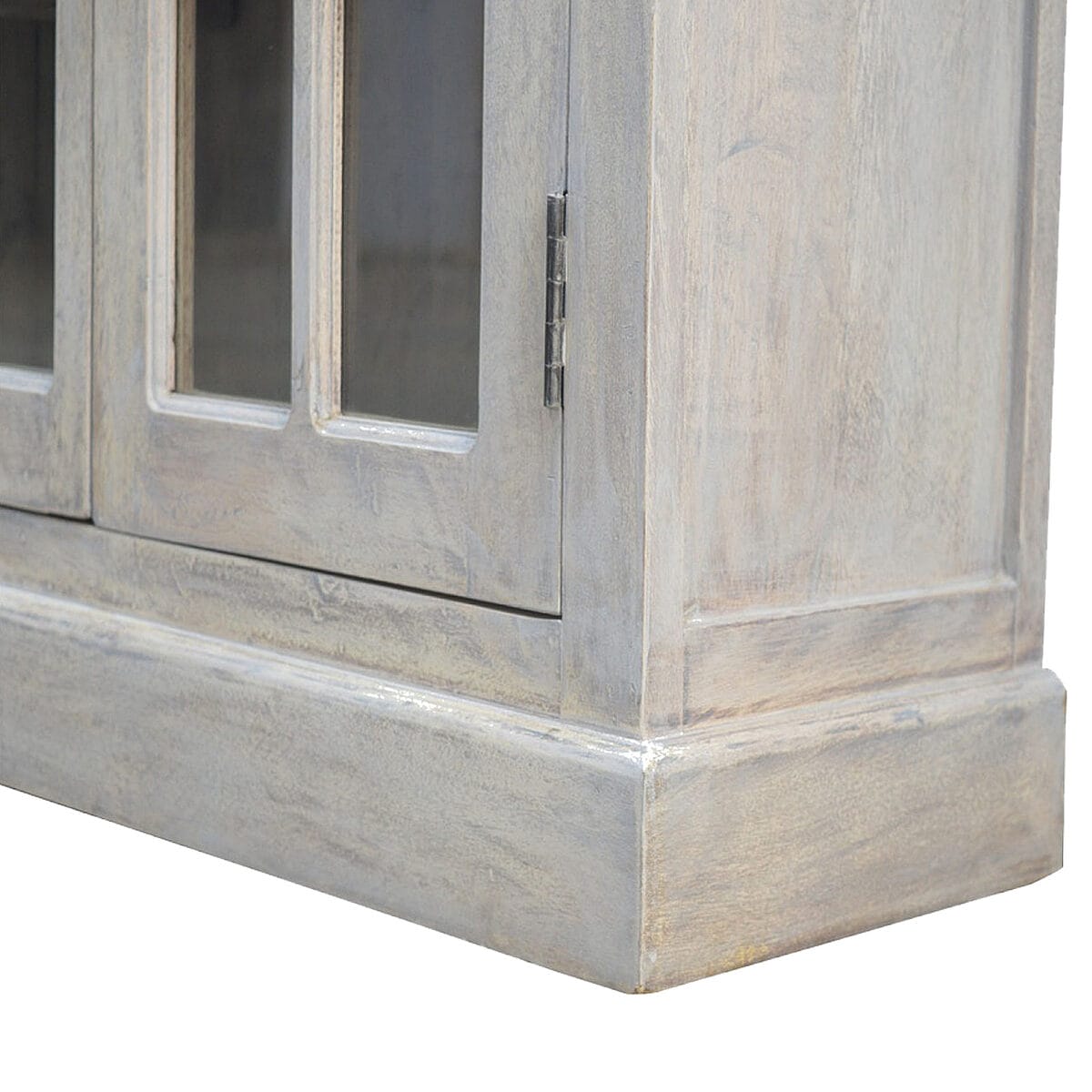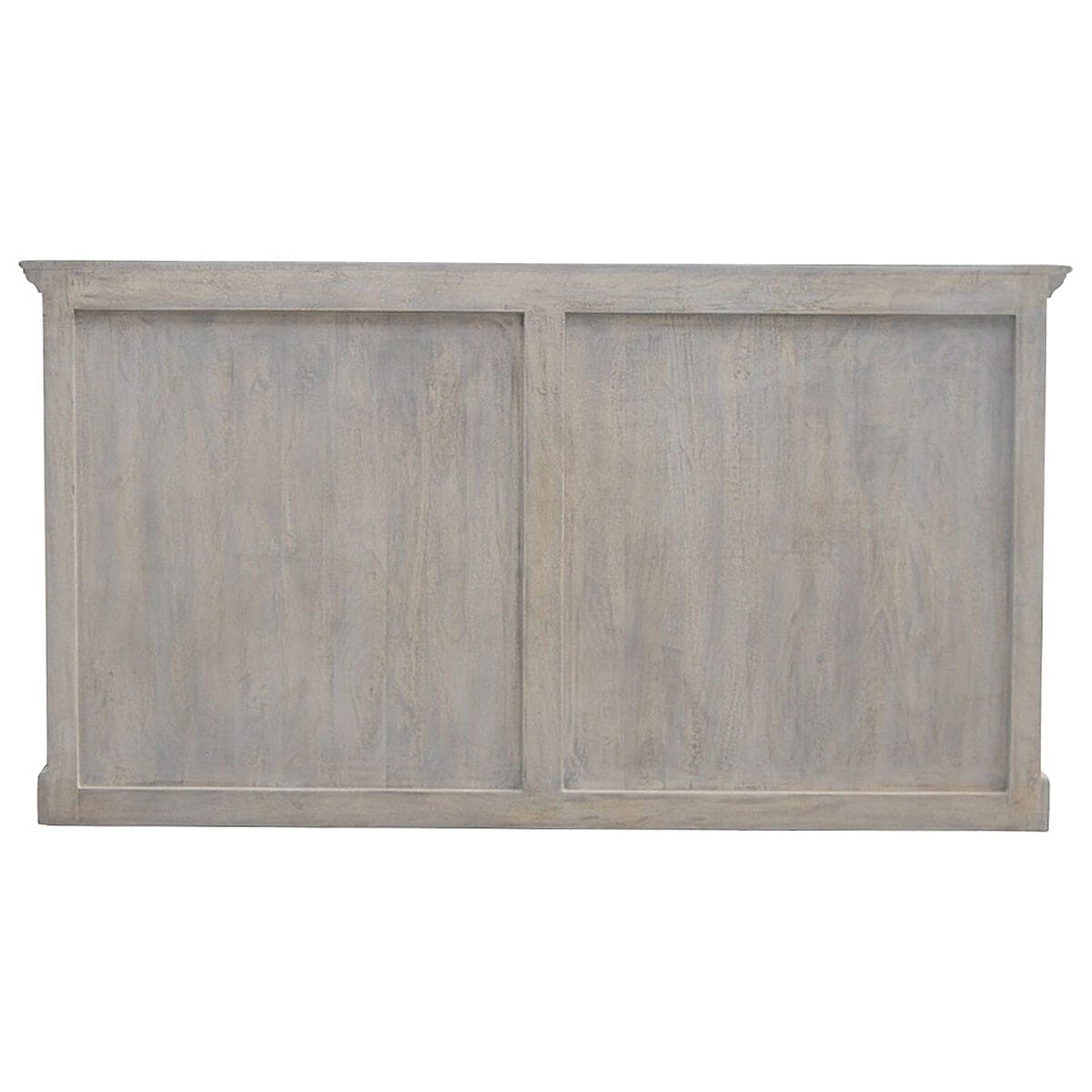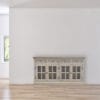 This Stone Acid Wash Glazed Sideboard is crafted from solid mango wood, which is meticulously hot dipped using a laborious caustic wash technique. The multi stage finishing process results in a beautiful weathered aged acid washed finish. These Solid Wood Sideboards feature 4 glazed doors with shelves inside, and 4 drawers for additional storage. This piece would make a stunning addition to any home.