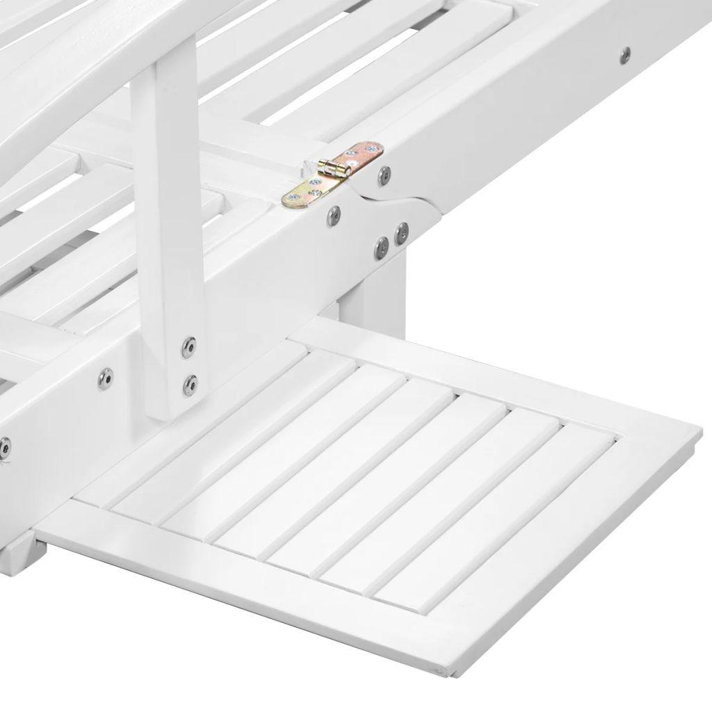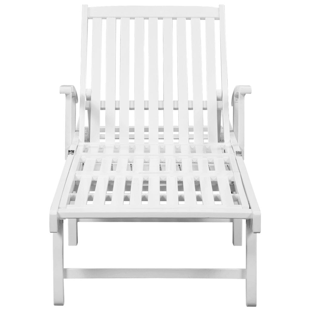 This classic garden lounger has an attractive slatted design, and will add a touch of rustic charm to your garden, patio, pool deck or other outdoor living space. This daybed is made of durable, solid acacia wood, which has been finished with a white coat of paint and is characterised by its excellent weather-resistance. Therefore, our sun lounger is extremely suitable for outdoor use. Equipped with 2 wheels, it can be easily moved around. The chaise lounge boasts a convenient pull-out table, on which you can place your phone, sunglasses, drink and other small items. The backrest can be adjusted in 5 positions, from fully upright to completely flat. The footrest is also adjustable, and it has two comfortable armrests. The classic design with seat and backrest slats adds to its rustic charm. Take a load off on this lovely sun lounger!