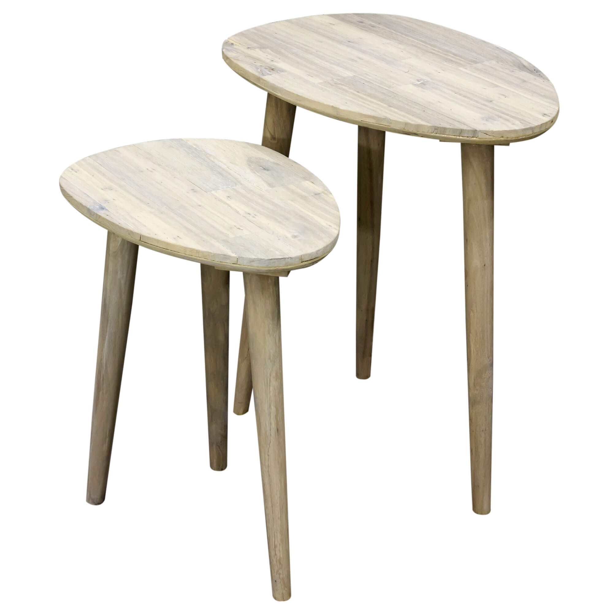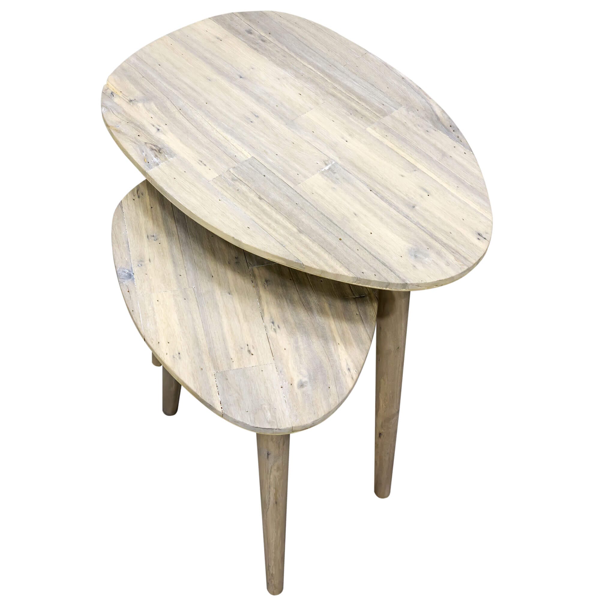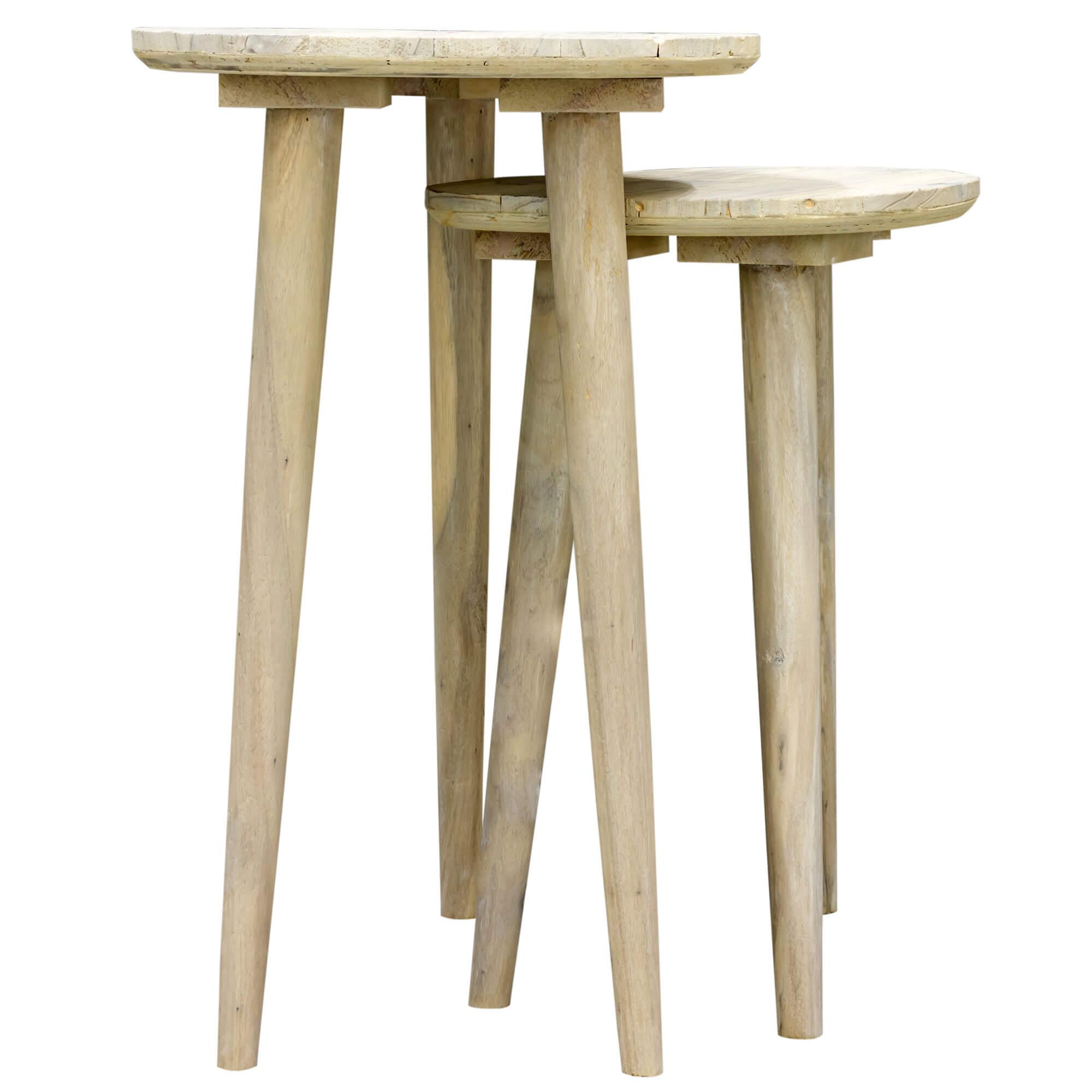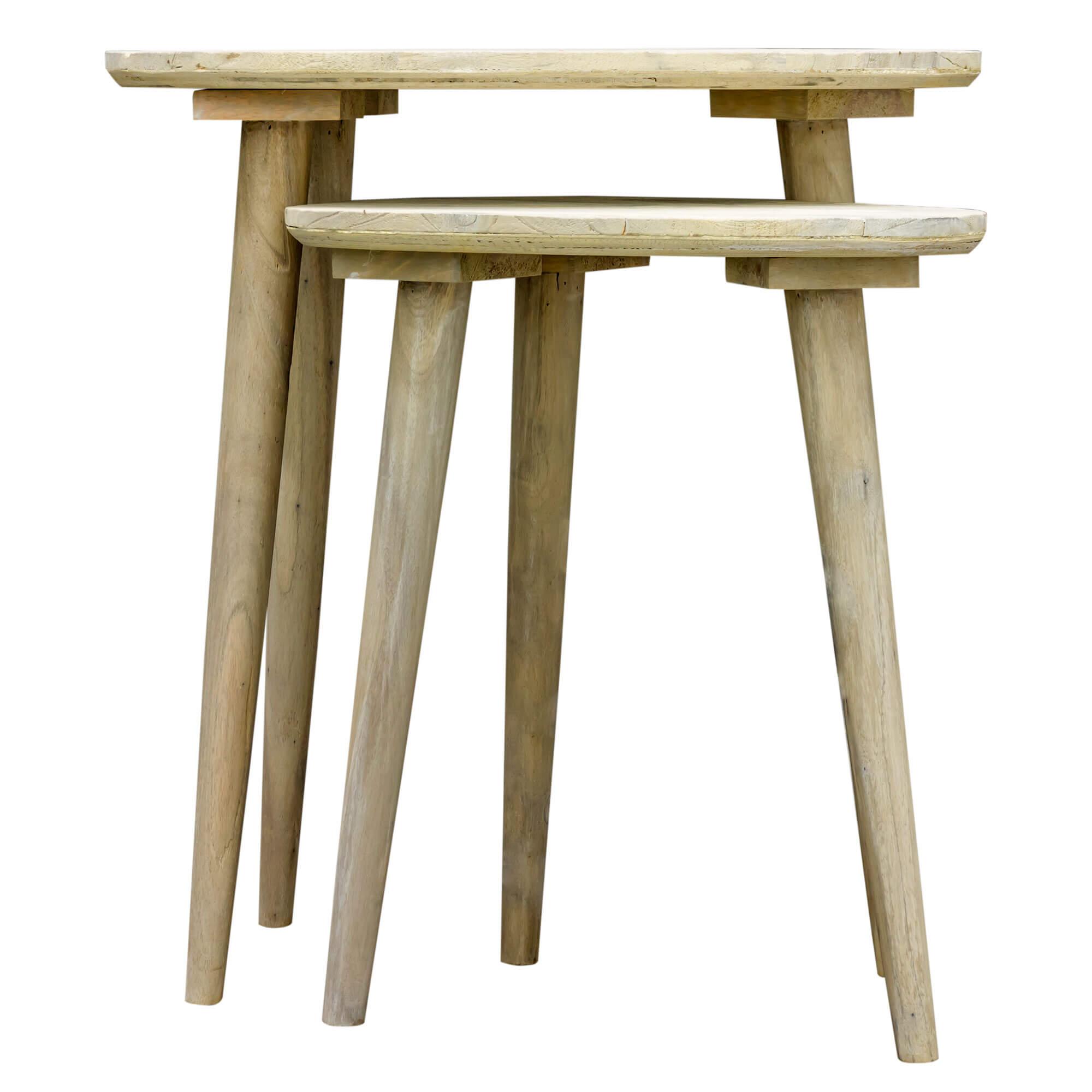 Natural timber Sylo Nest of 2 Side Tables with exposed grain and a light weathered grey finish to soften it all up.