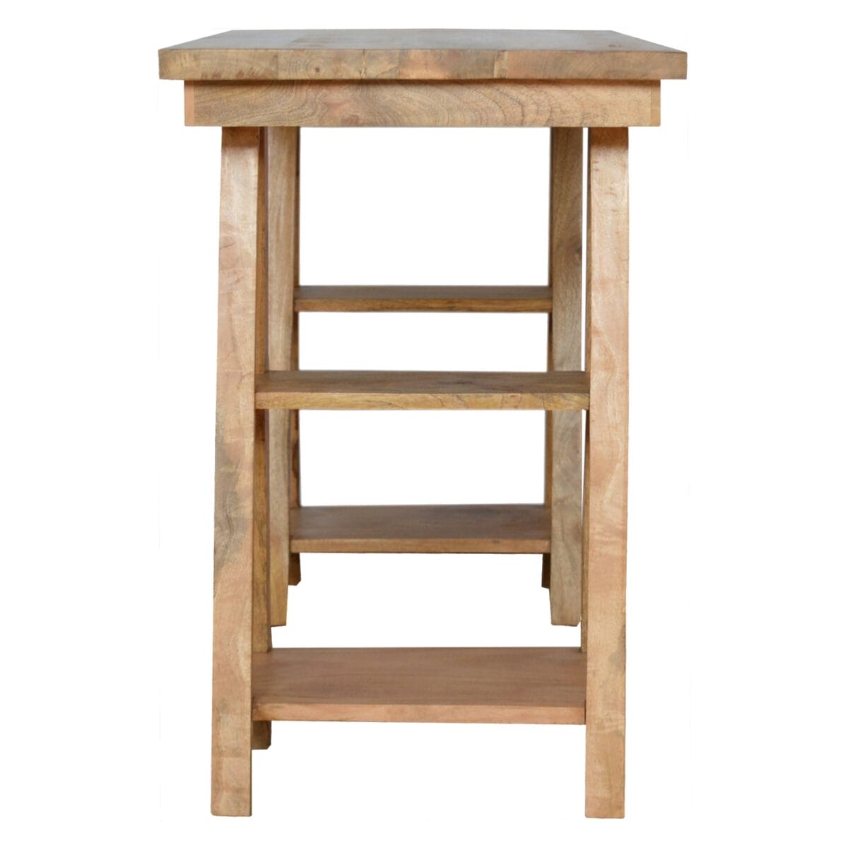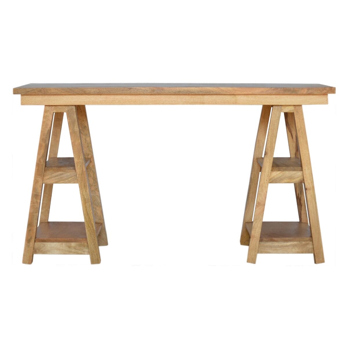 The Trestle Retail Open Display Unit & Computer Desk is a stylish and functional piece of furniture for your home or office. The solid mango wood construction, trestle-style legs, and light oak finish give these Solid Wood Desks a warm and inviting look that will complement any décor. You will love the convenience of the open display area for storage or displaying your belongings, as well as the handy computer desktop that is perfect for working from home.