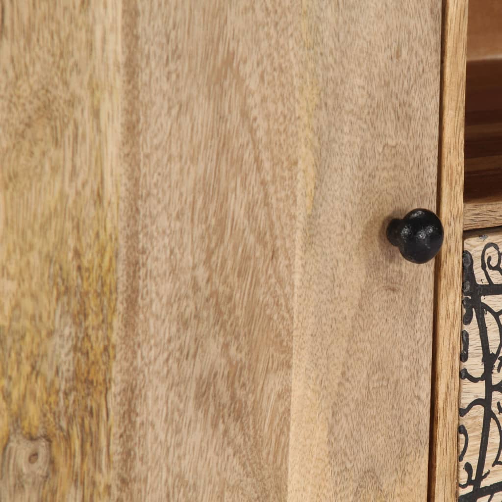This media TV cabinet will make an eye-catching addition to your interior. These Media & TV Units are made of solid mango wood, which is a hardwood with dense grains. Rough mango wood not only has the strength to bear the weight, but also stands the wear and tear of time. Therefore these beautifully-designed solid wood tv units are stable, durable and eye-catching. These Mango Wood TV Stands are fully handmade and the aesthetically-appealing wood grains make every piece of furniture distinctive and slightly different from each other. This solid wood tv unit features 2 drawers, 1 compartment and 2 cabinets with doors, providing ample space for storing your multimedia appliances, books, as well as various other items. Important note: The colours vary from piece to piece, making each of our Solid Wood TV Stands unique; the delivery is random.