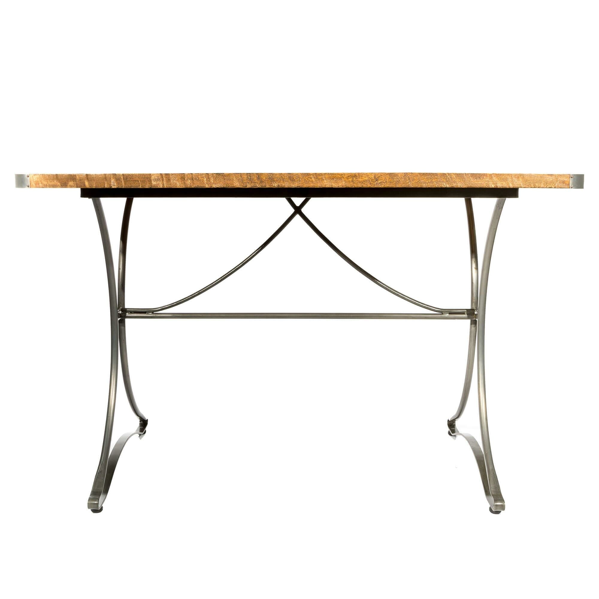 Industrial Urban This space saving vintage industrial bistro table is now available in 3 different square sizes (60cm, 70cm and the original 80cm) plus a rectangular option (120 x 70). It has a beautiful solid wood tabletop featuring round corners with gunmetal detail and a strong supporting base.