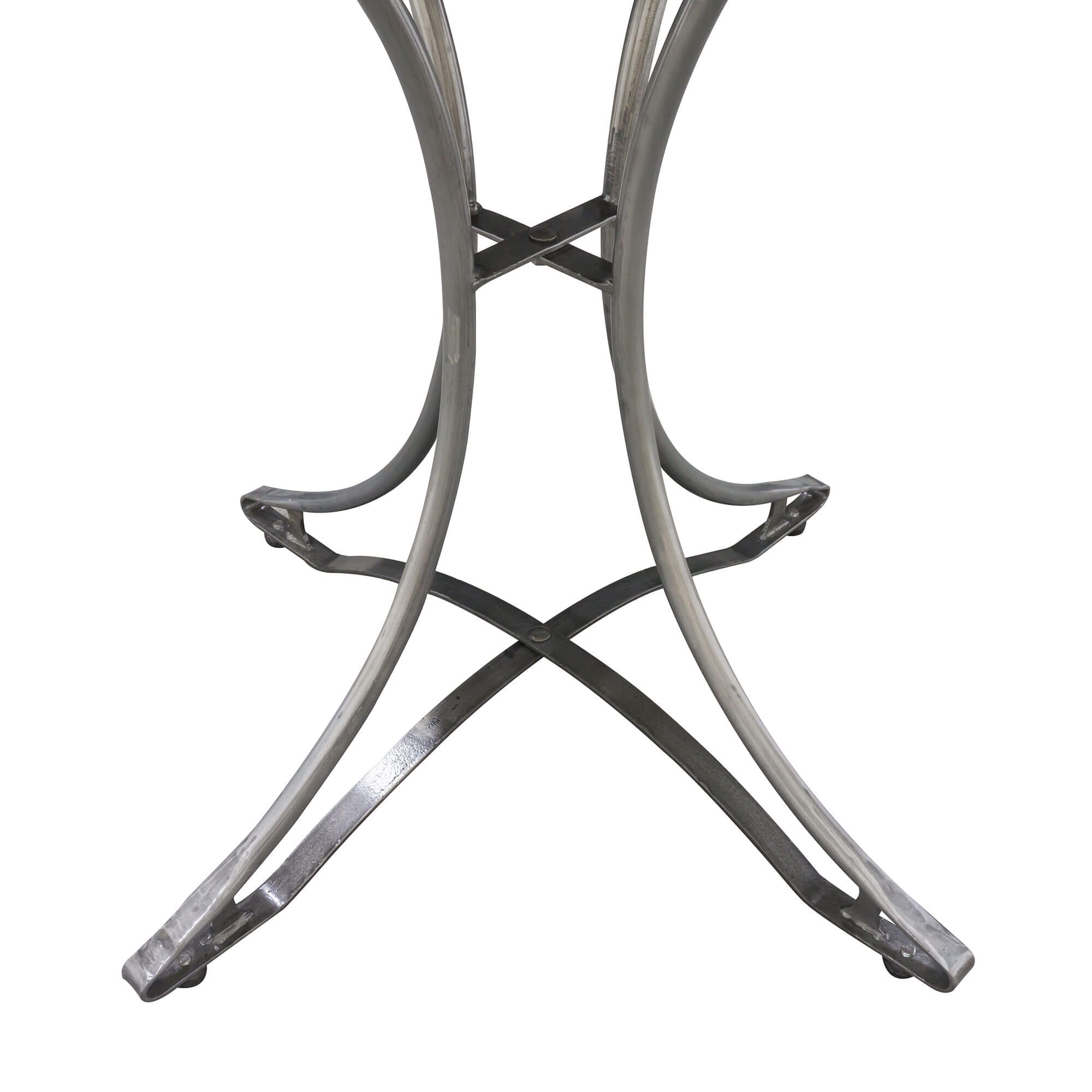 Industrial Urban space saving vintage industrial bistro table with reproduction tub chair x2 (pair). These chairs are made in powder coated steel and are suitable for exterior use, but do not have all weather protection.
