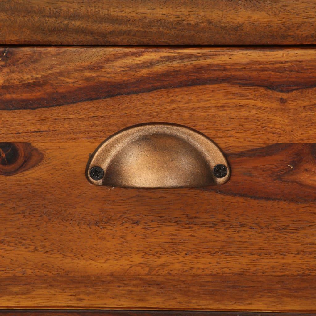 Our retro-style vitrine cabinet will add a touch of vintage charm to your living space. It can also be used as a sideboard, highboard or living room cabinet. The showcase is made of solid Sheesham wood, which is durable and beautiful. Sheesham is a tropical hardwood that is famous for its rich grains and also known as rosewood or palisander. Every step of the process is carried out with the greatest care, be it polishing, painting or lacquering. The craftsmanship and beautiful wood grains make every piece of our Handmade Furniture unique and slightly different from the next. The showcase provides ample storage space for keeping your various items such as books or magazines neatly organised and free from dust. Our cabinet is easy to assemble. Important note: The wood grains and colours may vary from piece to piece, making each of our vitrine cabinets unique; the delivery is random.